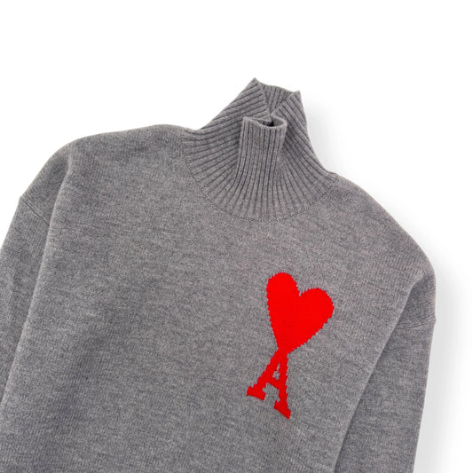 AMI PARIS AMI DE COEUR TURTLENECK SWEATER GREY / RED M