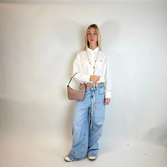 Stone Island Orange 80s Silver Button-Up Collared Spellout Jumper