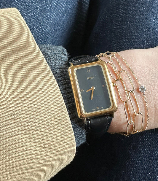 Vintage Fendi Gold Plated Watch with Black Croc Leather Strap