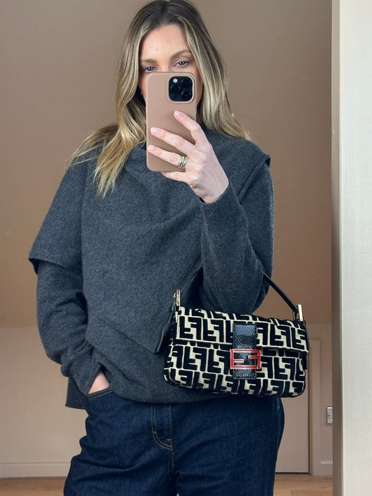 Vintage Fendi Mamma Baguette in Knitted Grey Cashmere