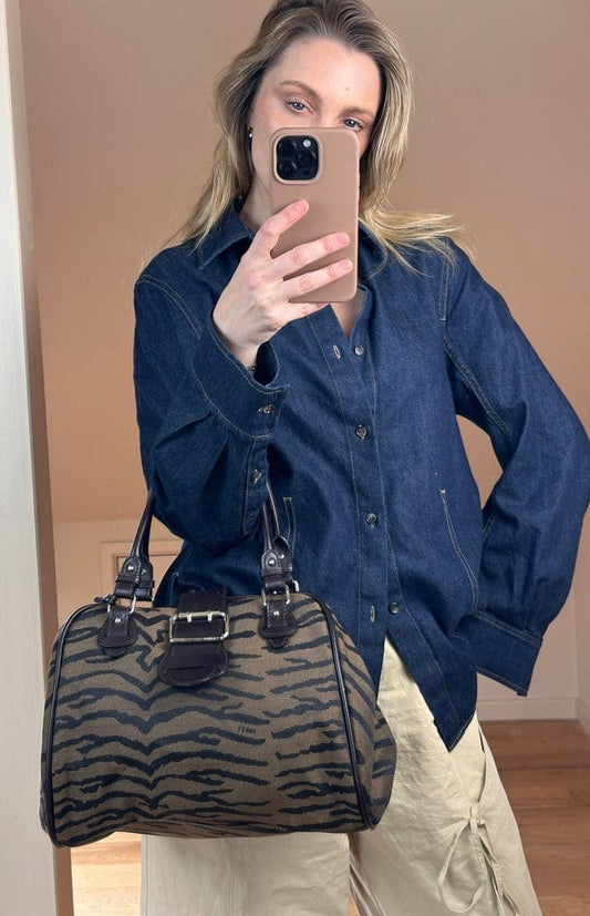 Fendi Vintage Large Chef Bag in Leopard Print Calf Hair