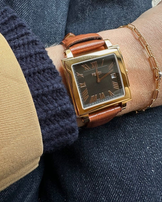 Vintage Fendi Gold Plated Watch with Tan Croc Leather Strap