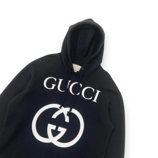 GUCCI LOGO-PRINT LOOPBACK COTTON-JERSEY HOODIE BLACK S