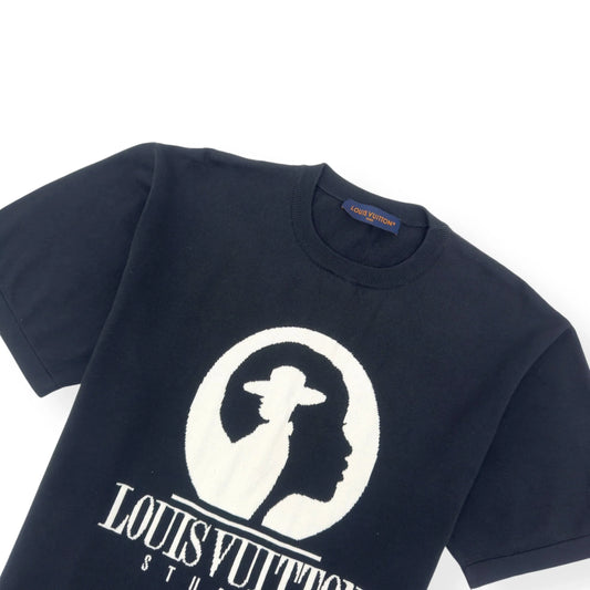 LOUIS VUITTON COTTON INTARSIA STUDIOS T-SHIRT BLACK / WHITE XXL