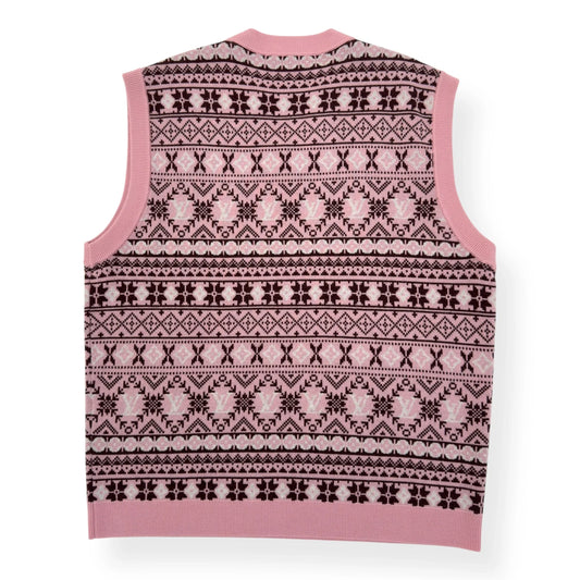 LOUIS VUITTON X TYLER THE CREATOR FAIR ISLE JACQUARD MERINO WOOL VEST LUXURY PINK XXL