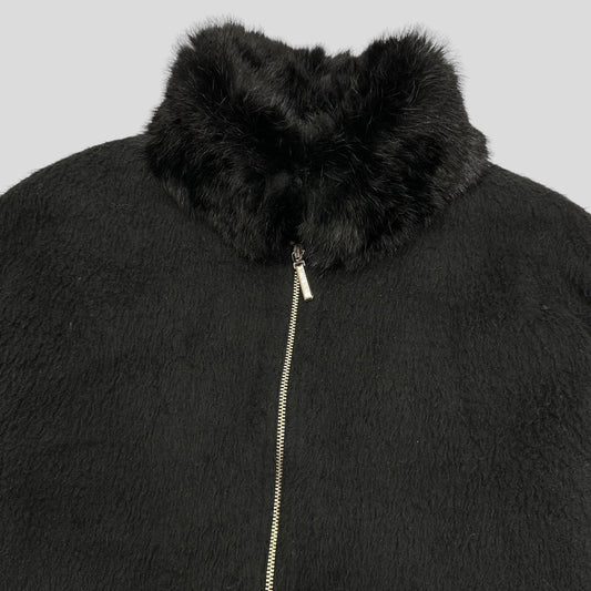 Moschino Jeans 00’s Rabbit Fur Collar Cropped Furry Jacket - UK8-12