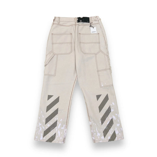 OFF-WHITE DISTRESSED PAINT SPLATTER CARPENTER TROUSERS 31W