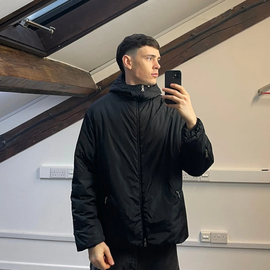 Prada Sport Black 2007 Panelled Nylon & Wool Padded Quilted Jacket
