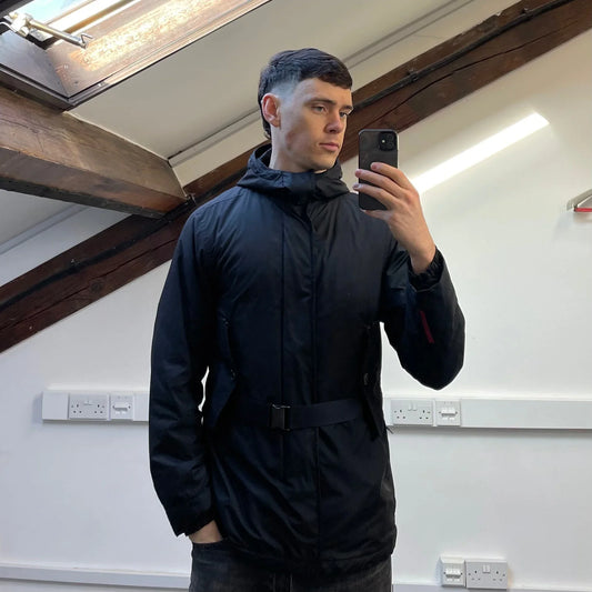 Prada Sport Black Belt Strap Padded Hooded Jacket