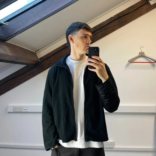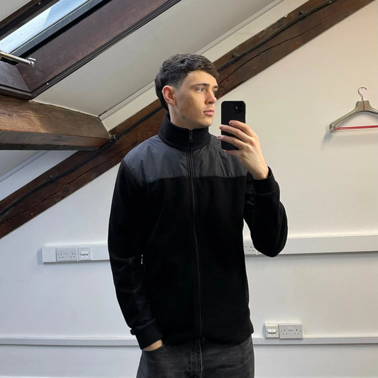 Prada Sport Black Lightweight Nylon Panel Fleece Jacket