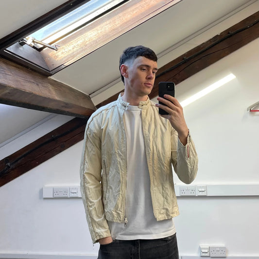 Prada Sport Cream 00s Mixed Metal Nylon Biker Jacket