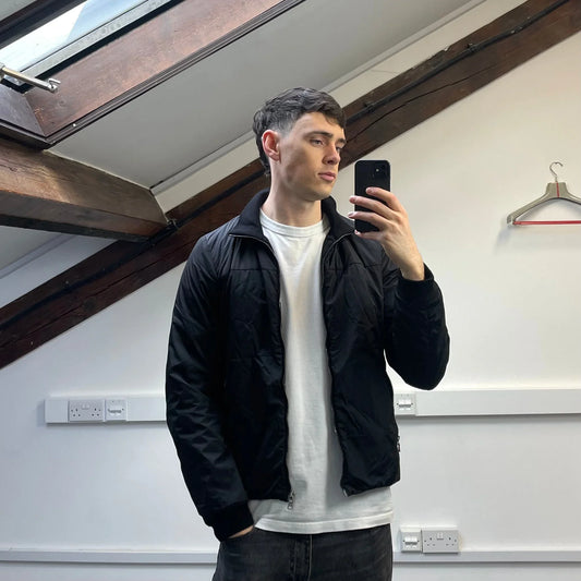 Prada Sport Black 2006 Leather Tab Nylon Padded Harrington Jacket