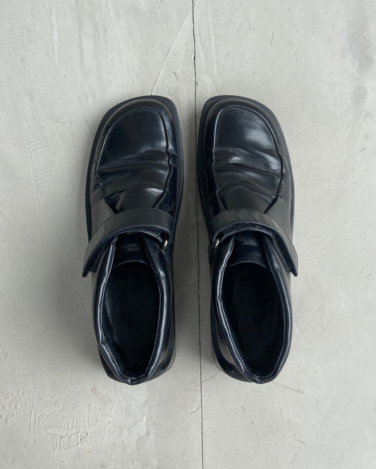 PRADA SS99 BLACK LEATHER SQUARE TOE SHOES - EU 36 / UK 3
