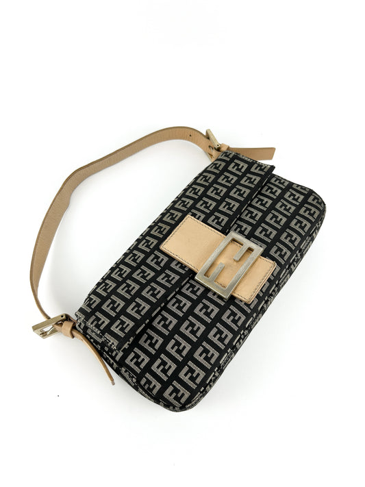 Vintage Fendi Zucca Baguette Shoulder Bag 90s (Black/Cream)