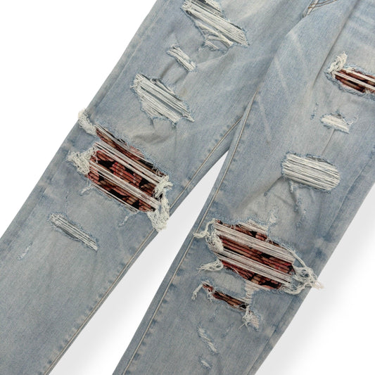 AMIRI PLAID PATCH THRASHER DENIM JEANS BLUE / ORANGE W34”