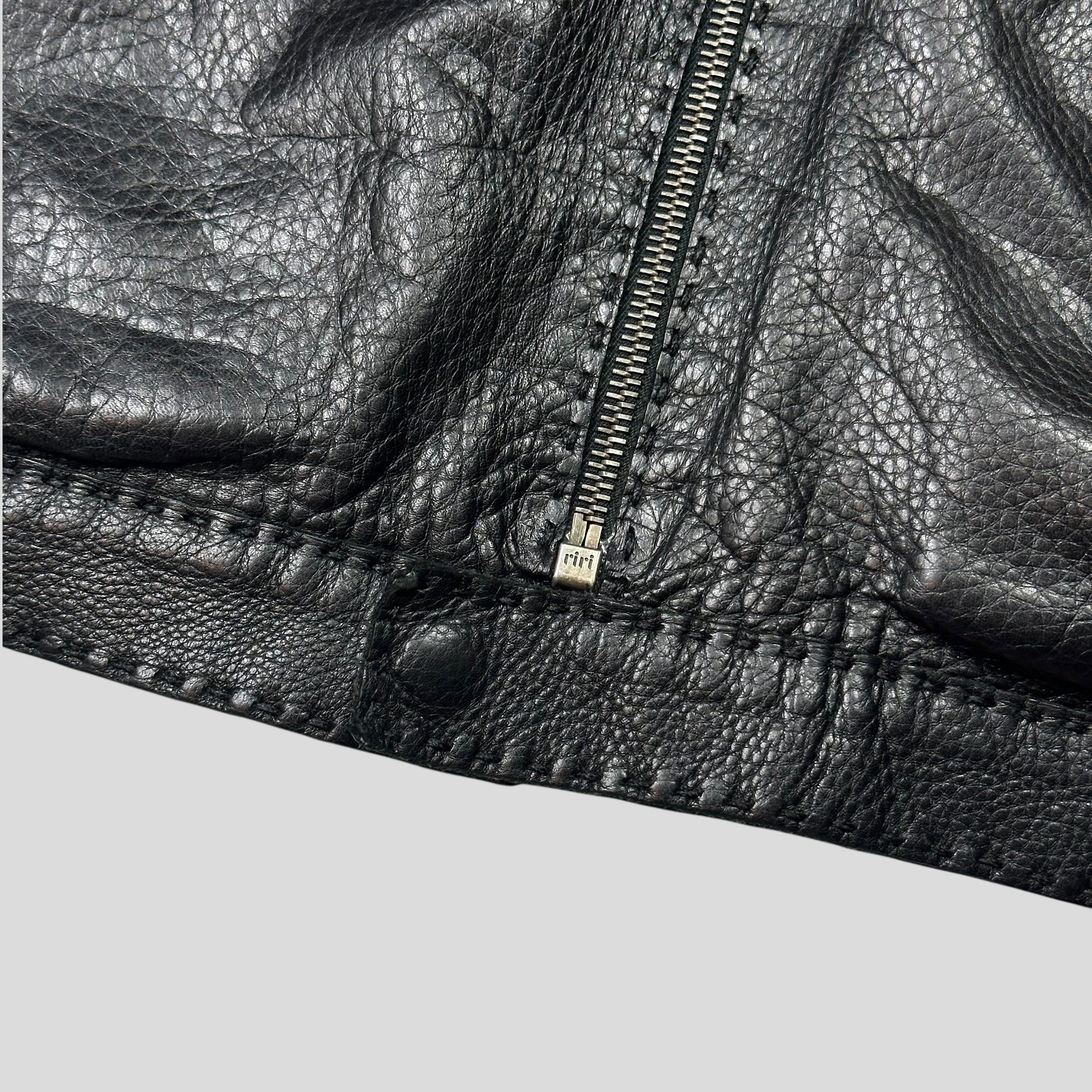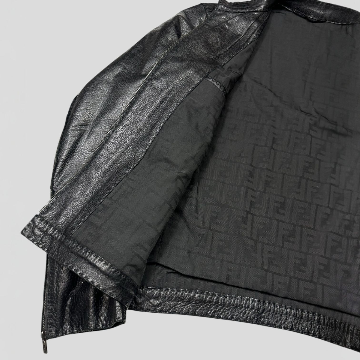 Fendi FF Textured Leather Exaggerated Stitch Moto Jacket - L