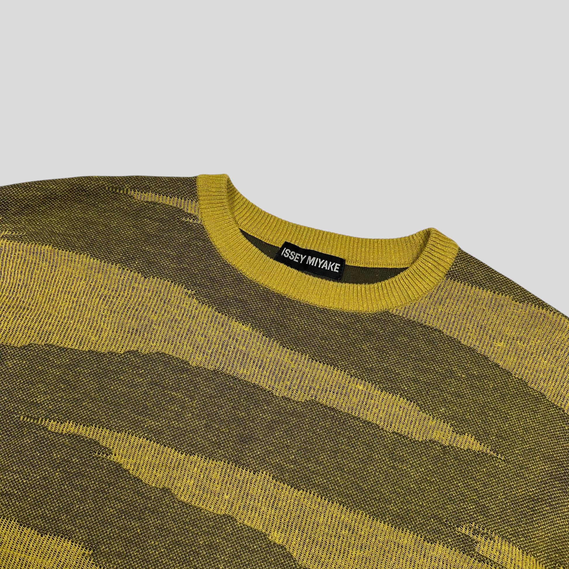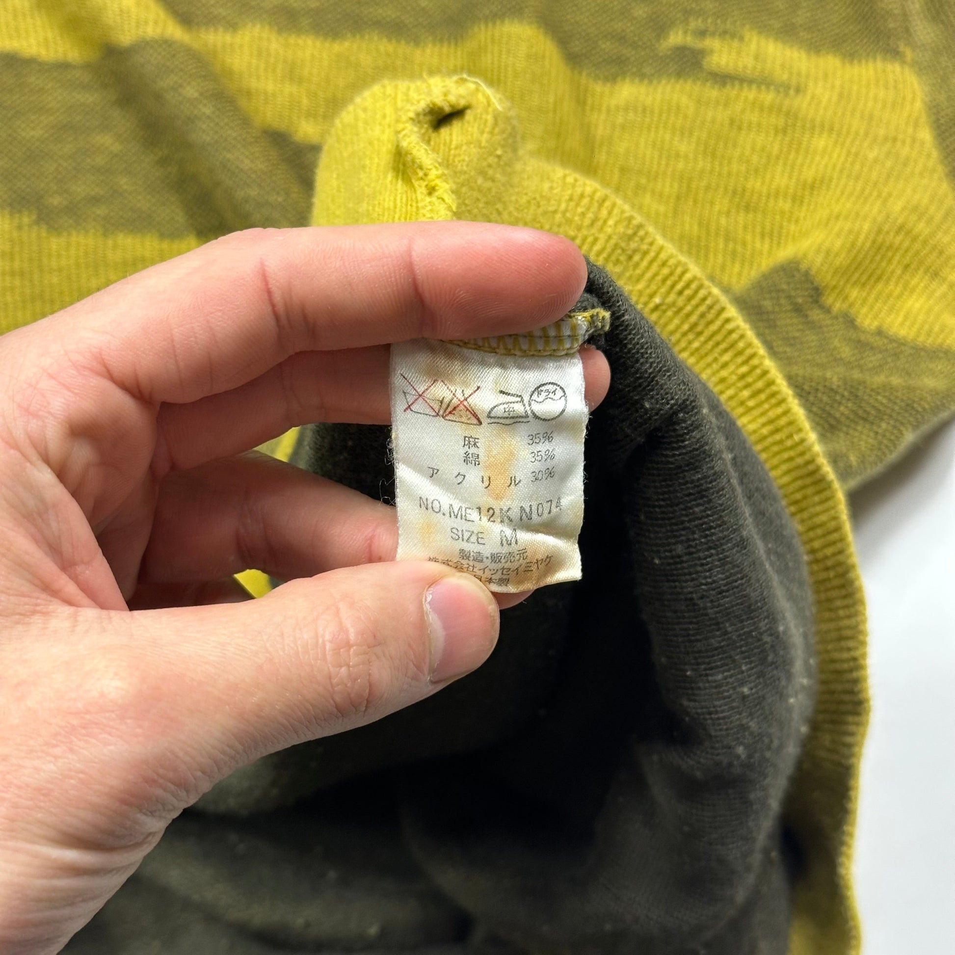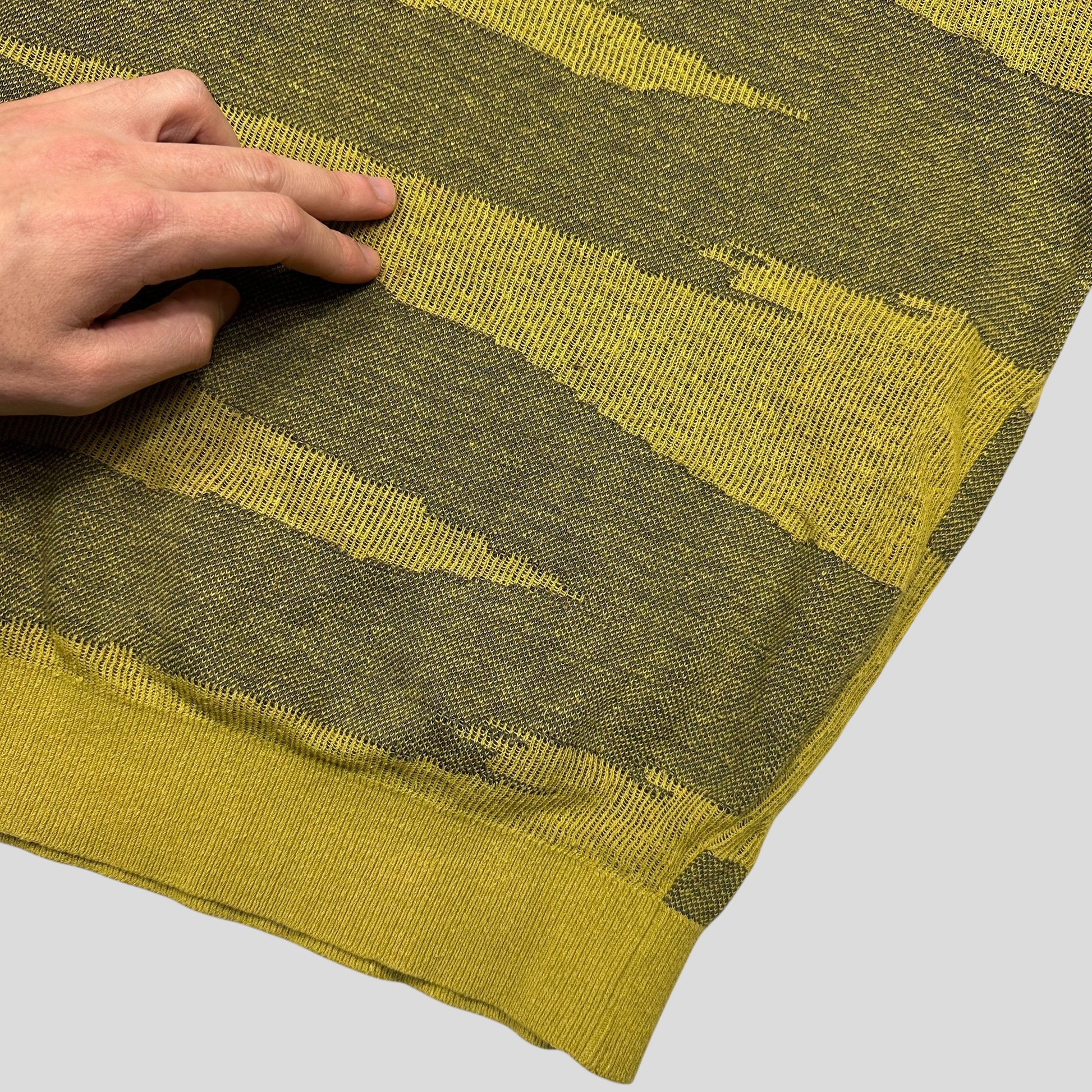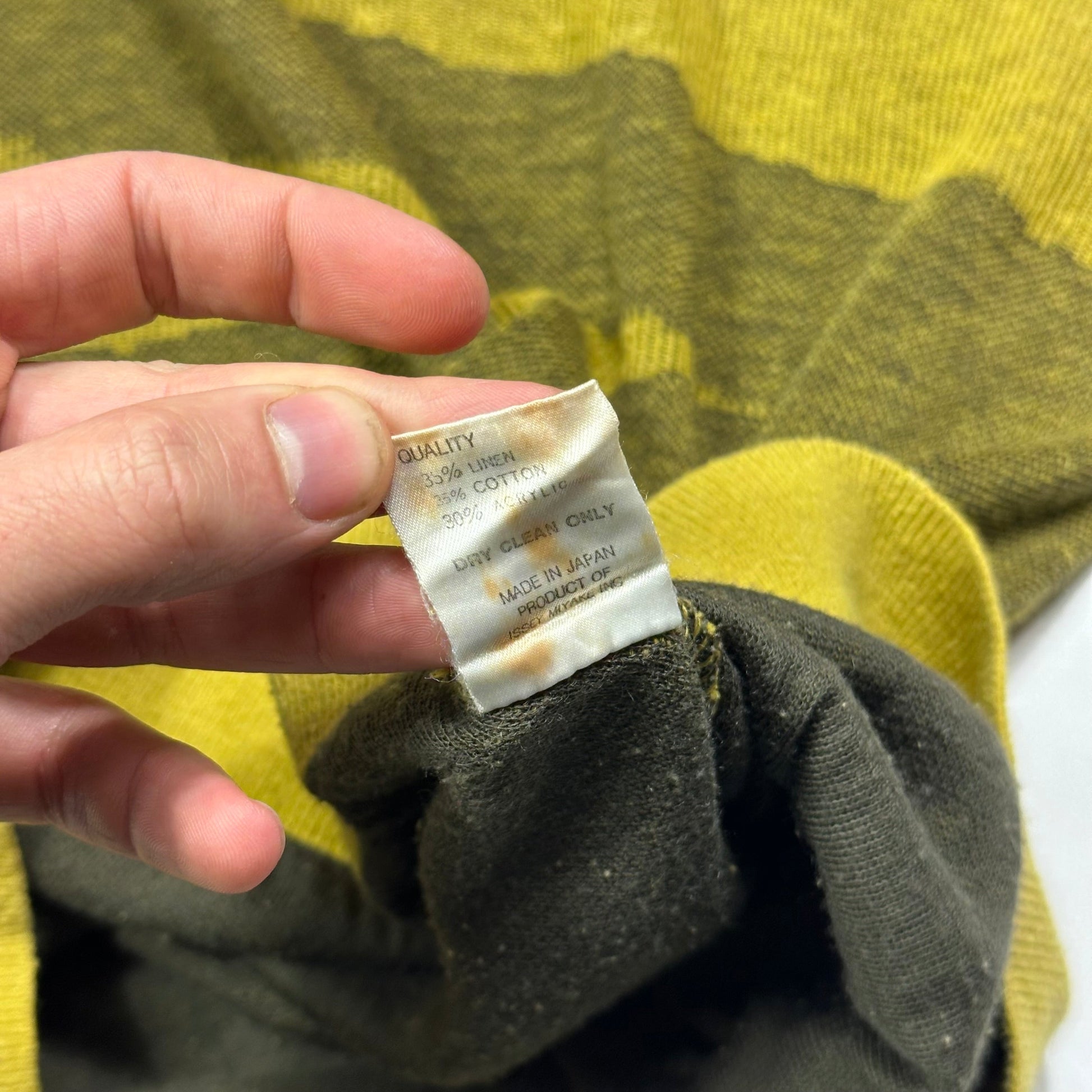 Very rare 2002 Issey Miyake mainline knitted yellow and grey crewneck, unique brushstroke pattern, lovely boxy fit.