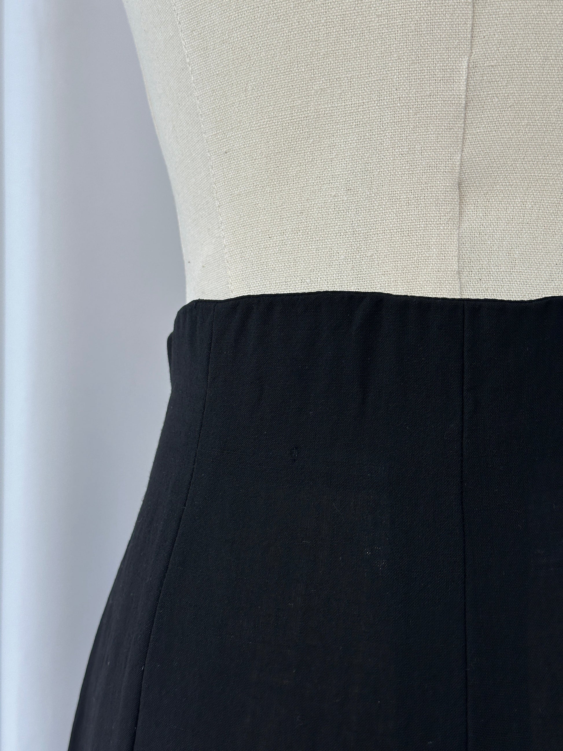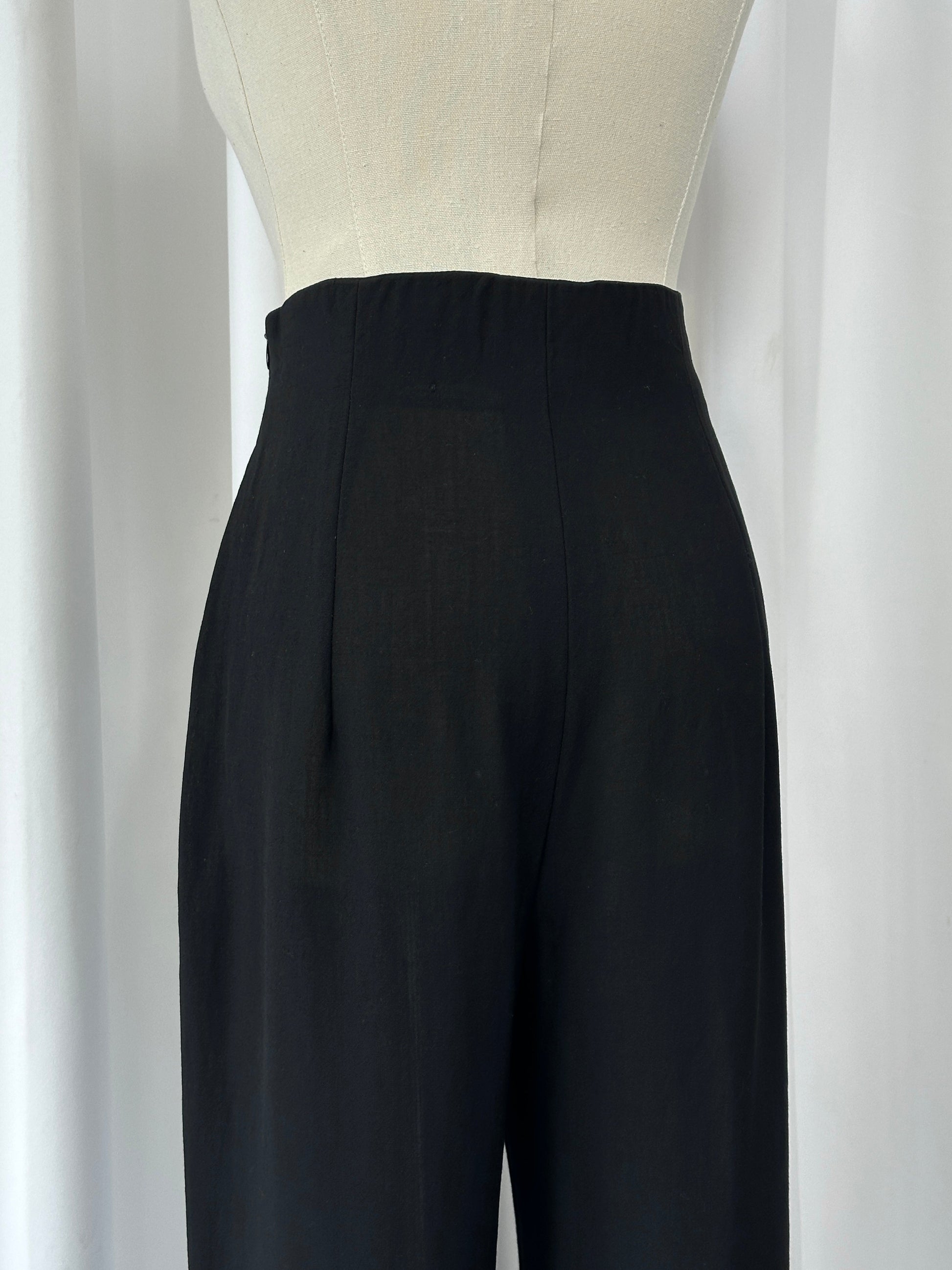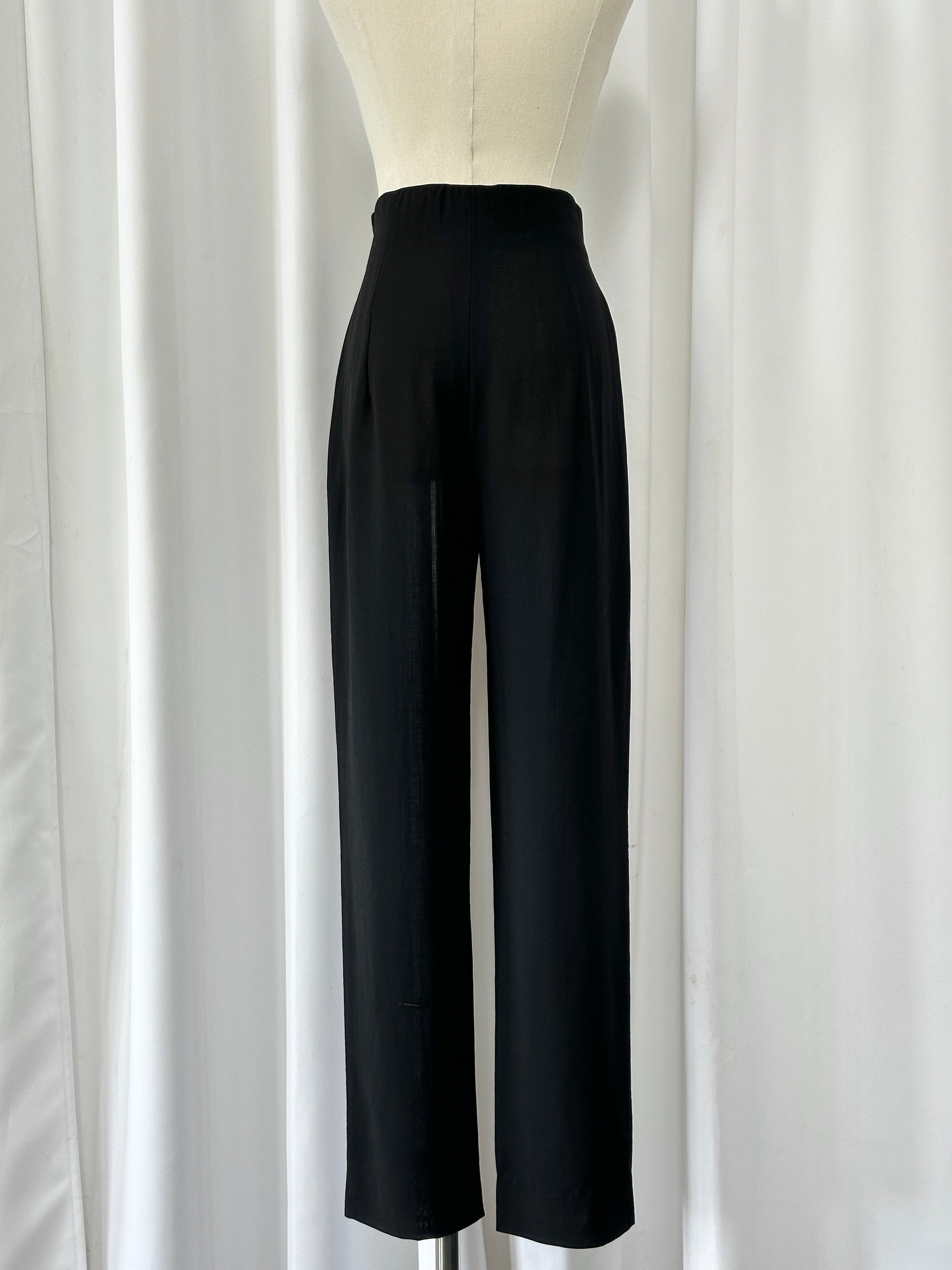 Minimalist Max Mara 1990s black wool trousers with a high waist and fluid straight leg cut for timeless tailoring.