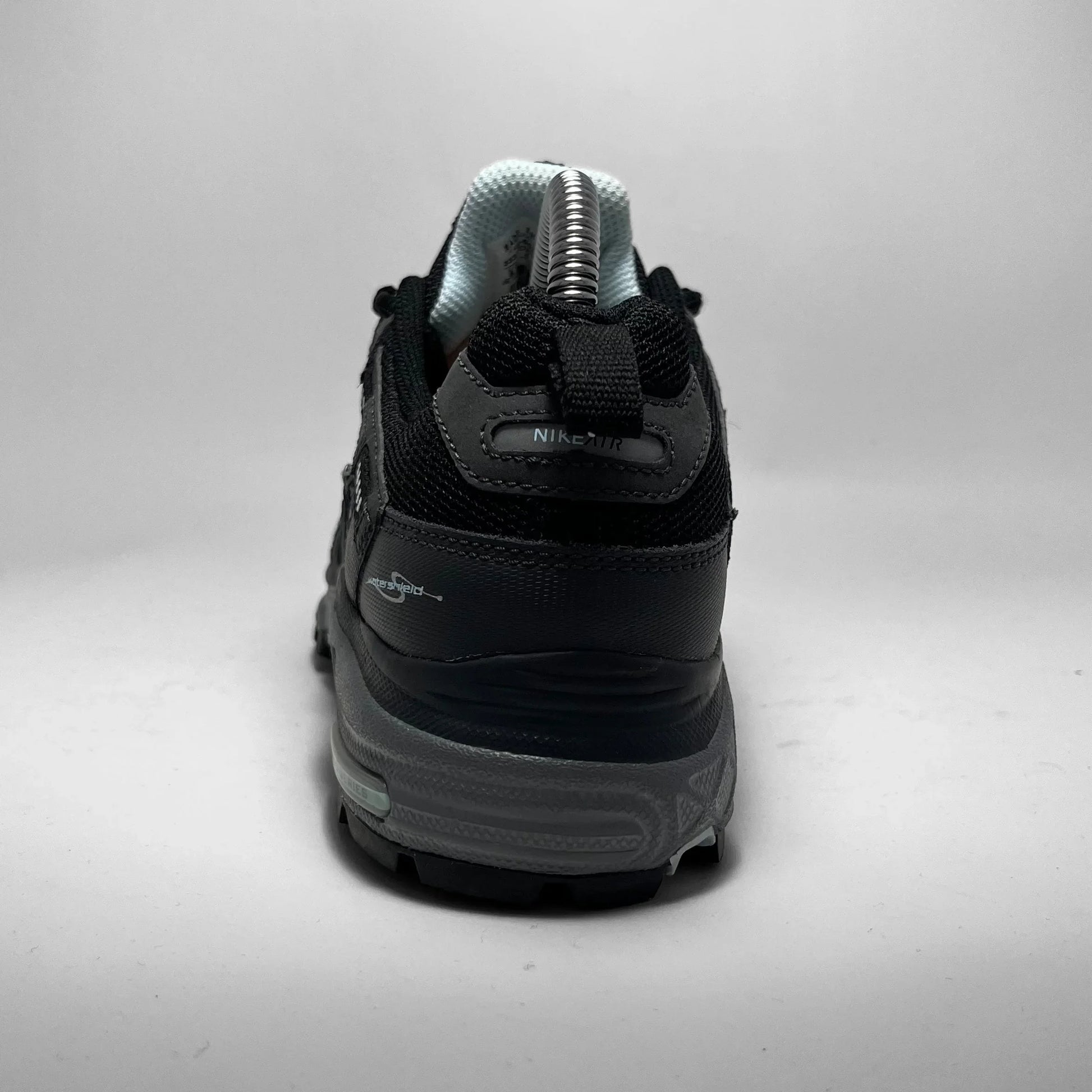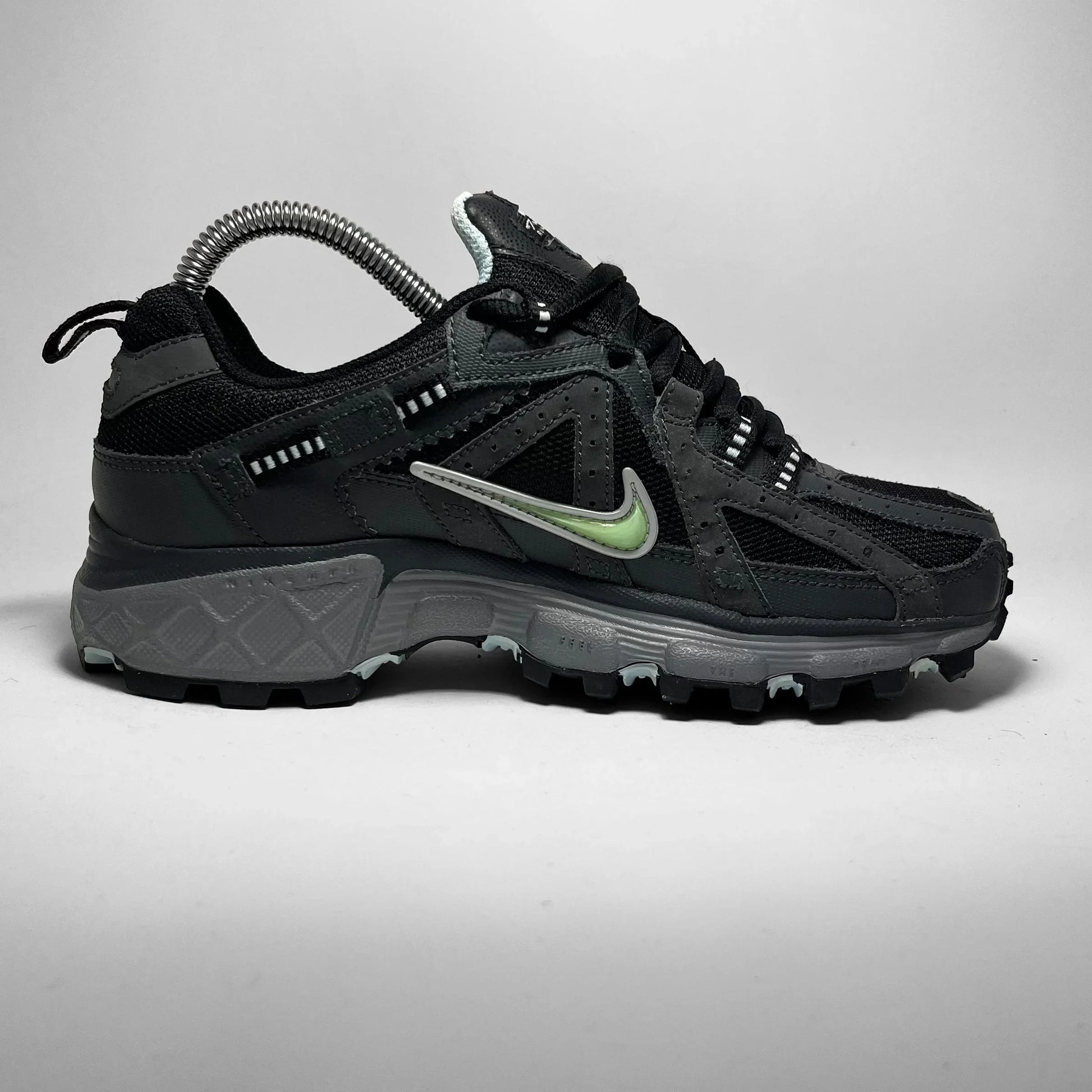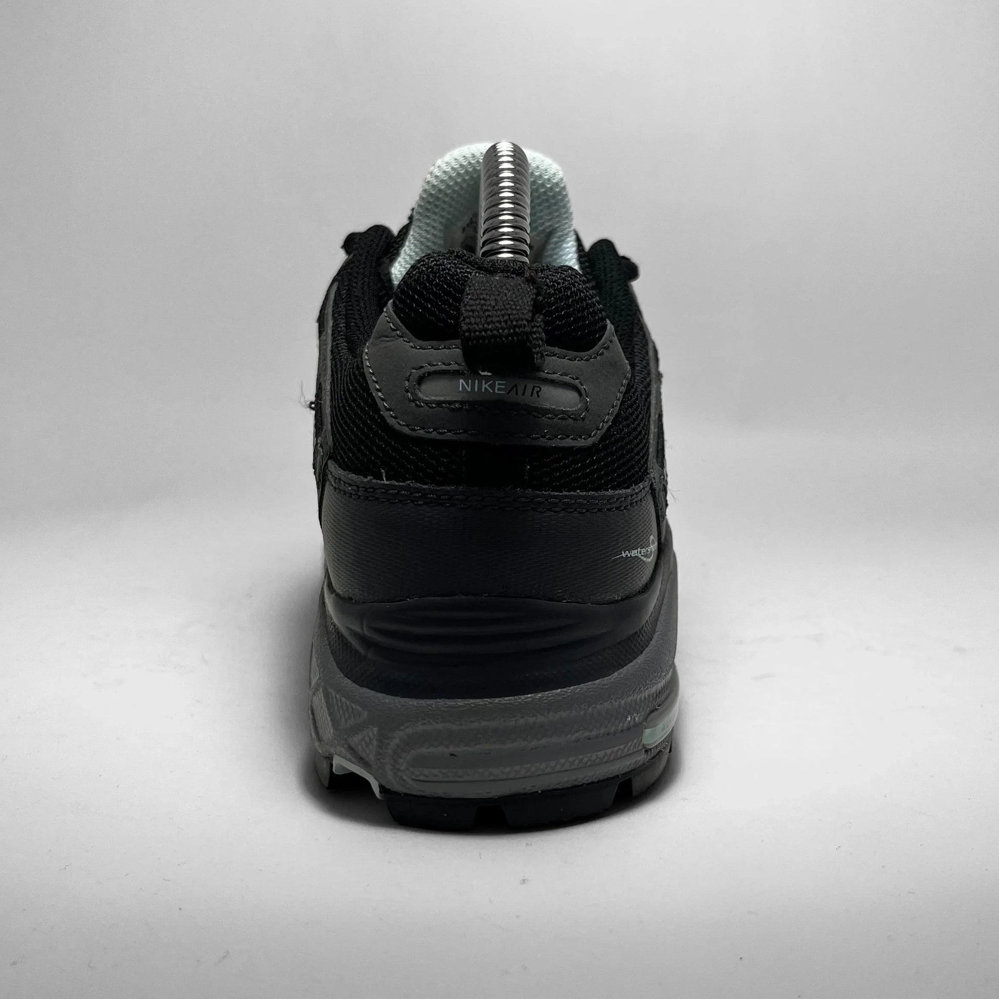 The Nike ACG Alvord Series from 2008 is a rugged trail runner designed for durability and performance. Featuring a black and dark grey upper with a mix of mesh and synthetic overlays, it provides breathability and support. Reflective detailing enhances visibility, while the dual-tone, mint-accented Swoosh adds a subtle contrast. The thick, aggressive outsole ensures superior traction on various terrains, with visible AIR cushioning for comfort. Functional and stylish, this pair embodies Nike ACG’s commitment to all-conditions gear.