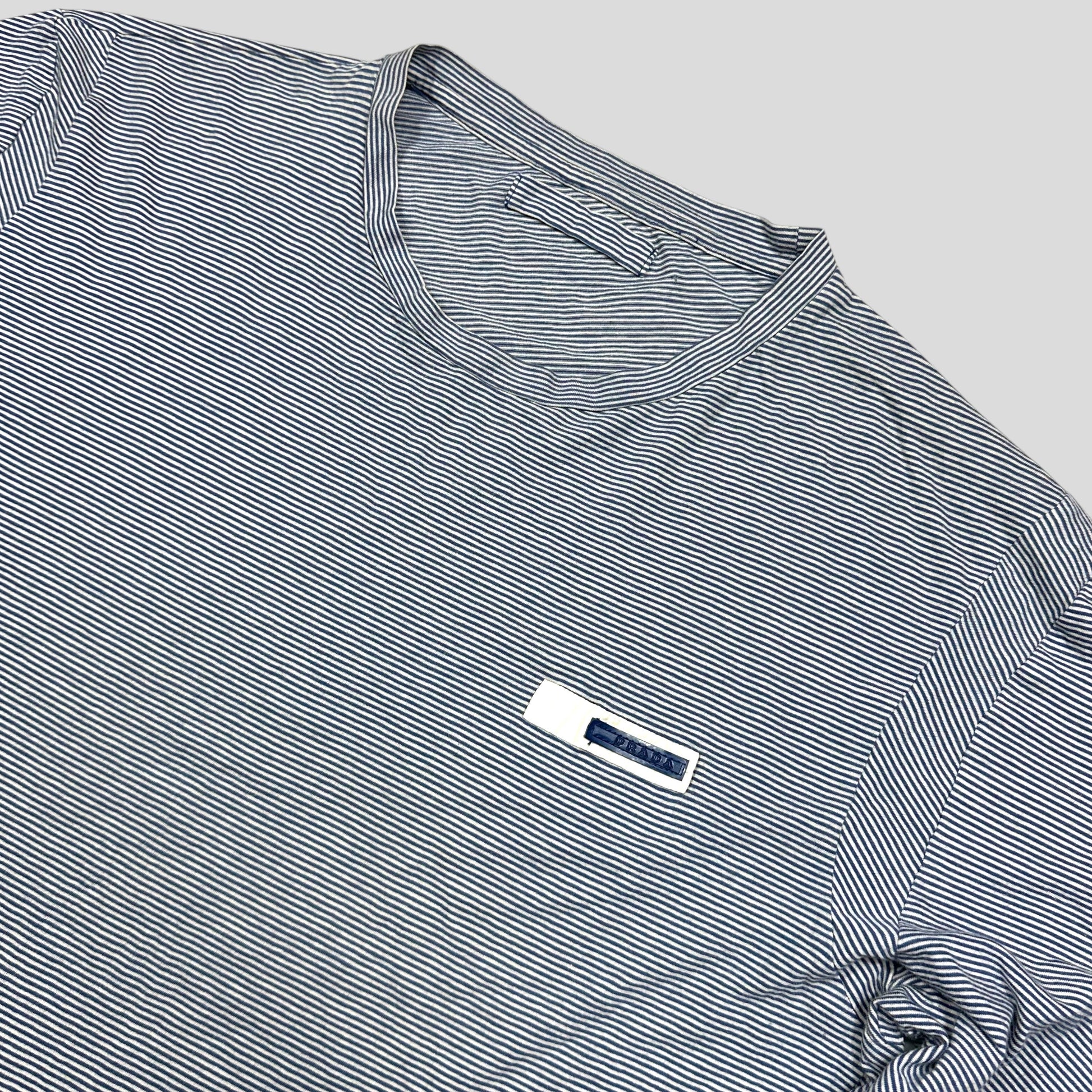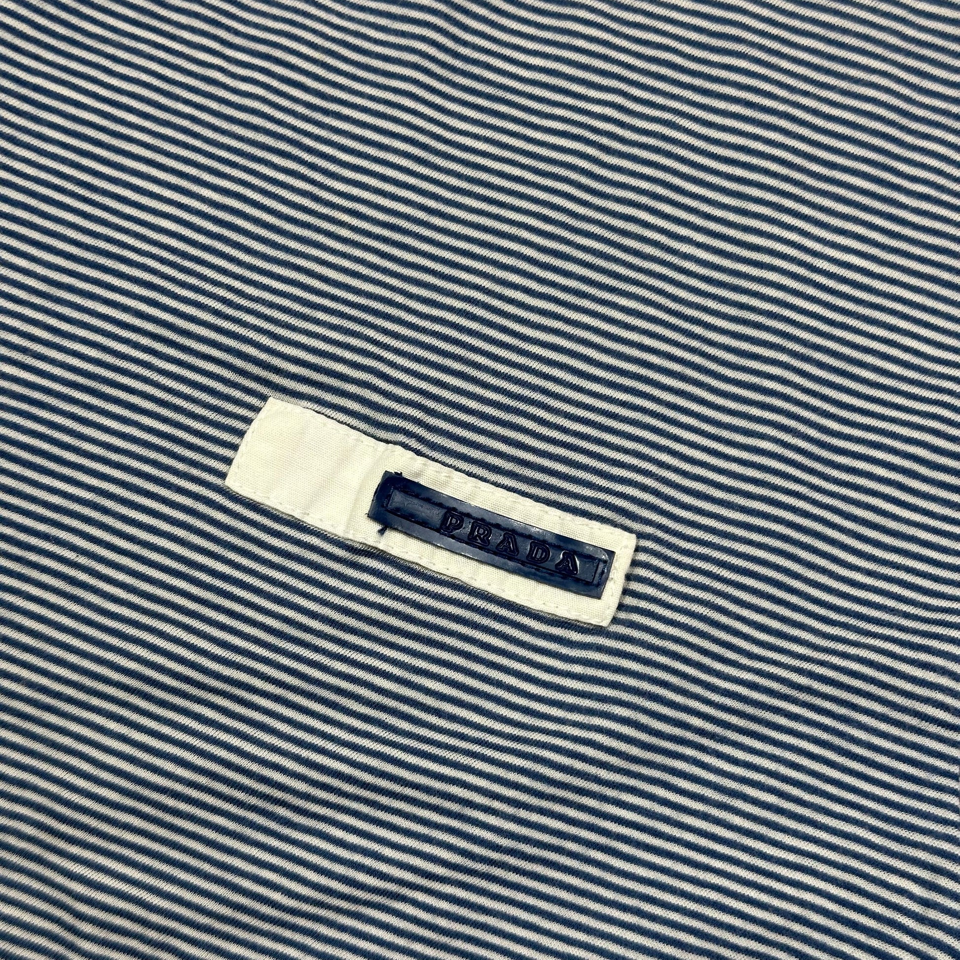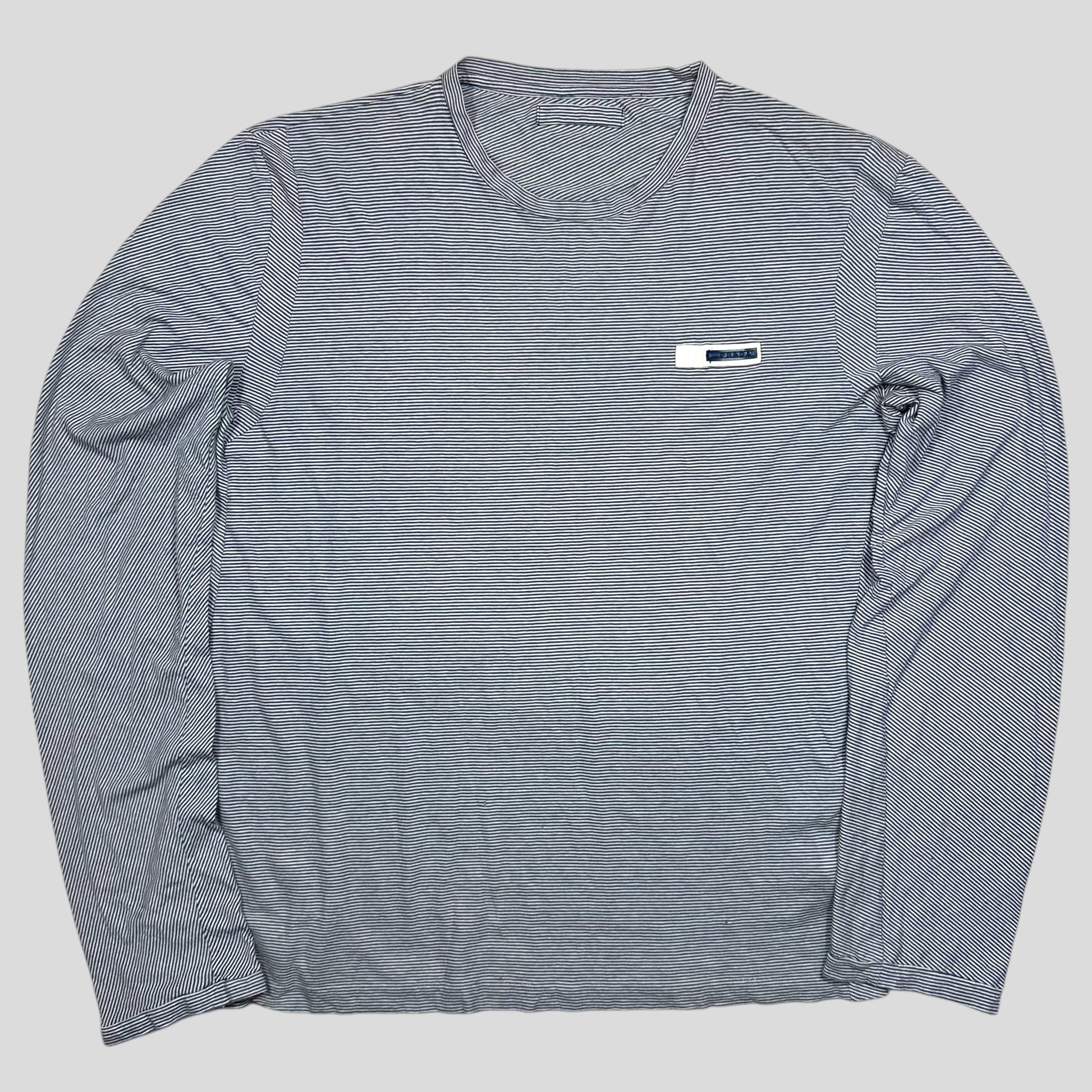 Rare Prada Sport 2009 blue and white striped lightweight cotton longsleeve tee, rare mini blue rubber Prada logo to chest.