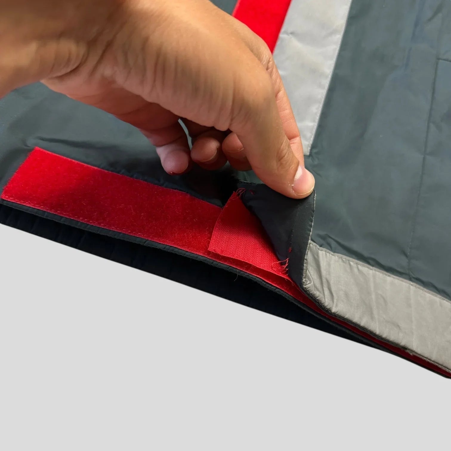 Extremely rare piece, seen in ice grey colour on the 1999 runway, this dark grey / green colourway has Prada Sport signature red Velcro, adjustable harness clip strap, adjustable velcro closure, large inside pocket, Prada Sport red tab to side.