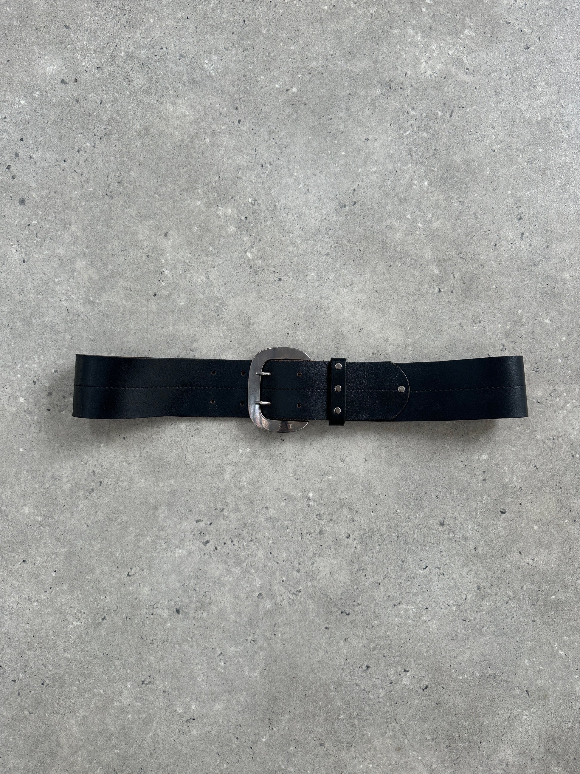 Vintage 1990s Chrome Chunky Leather Belt - W32-36”