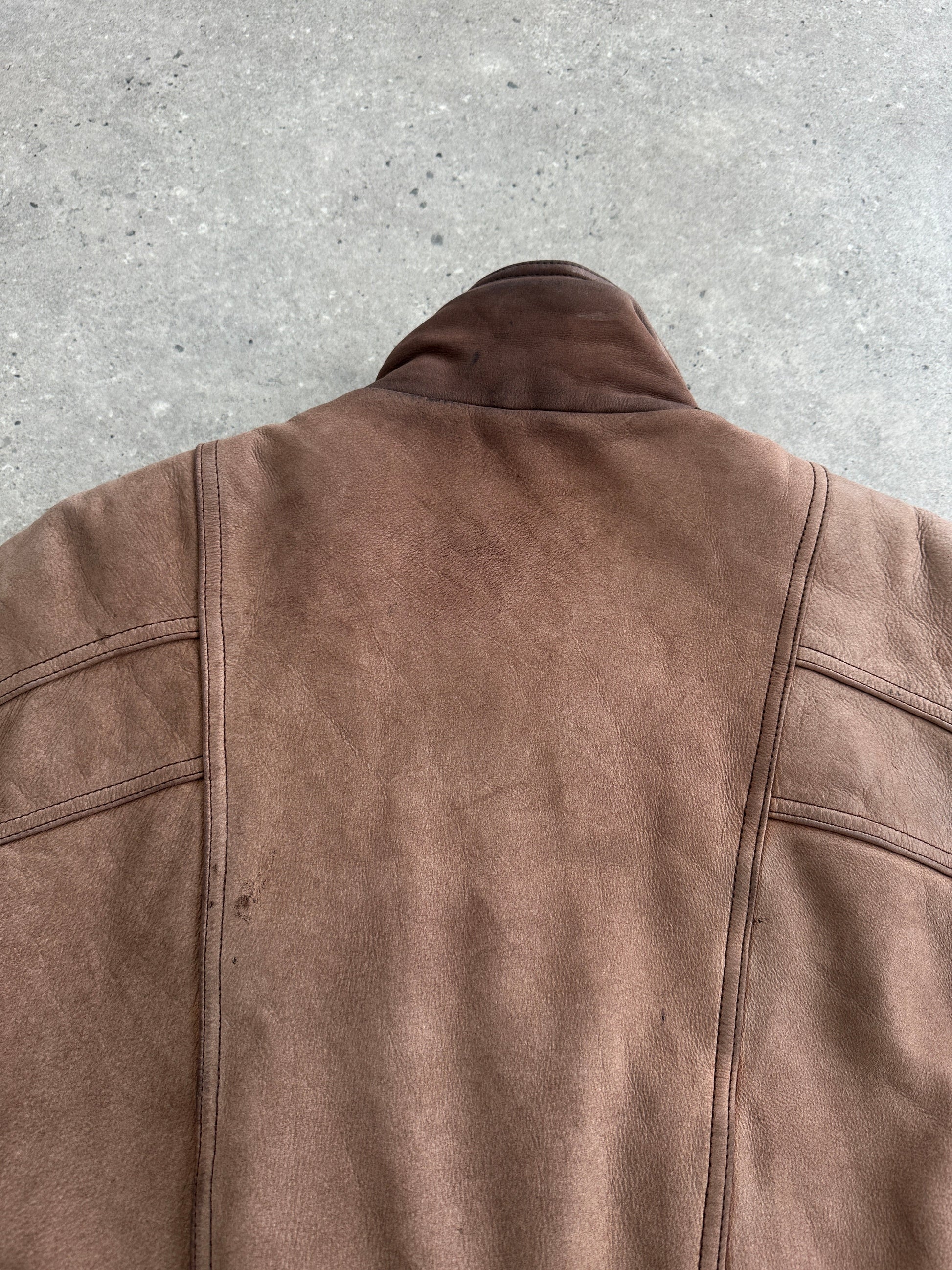 Vintage 1990s High Neck Aged Leather Bomber Jacket - L