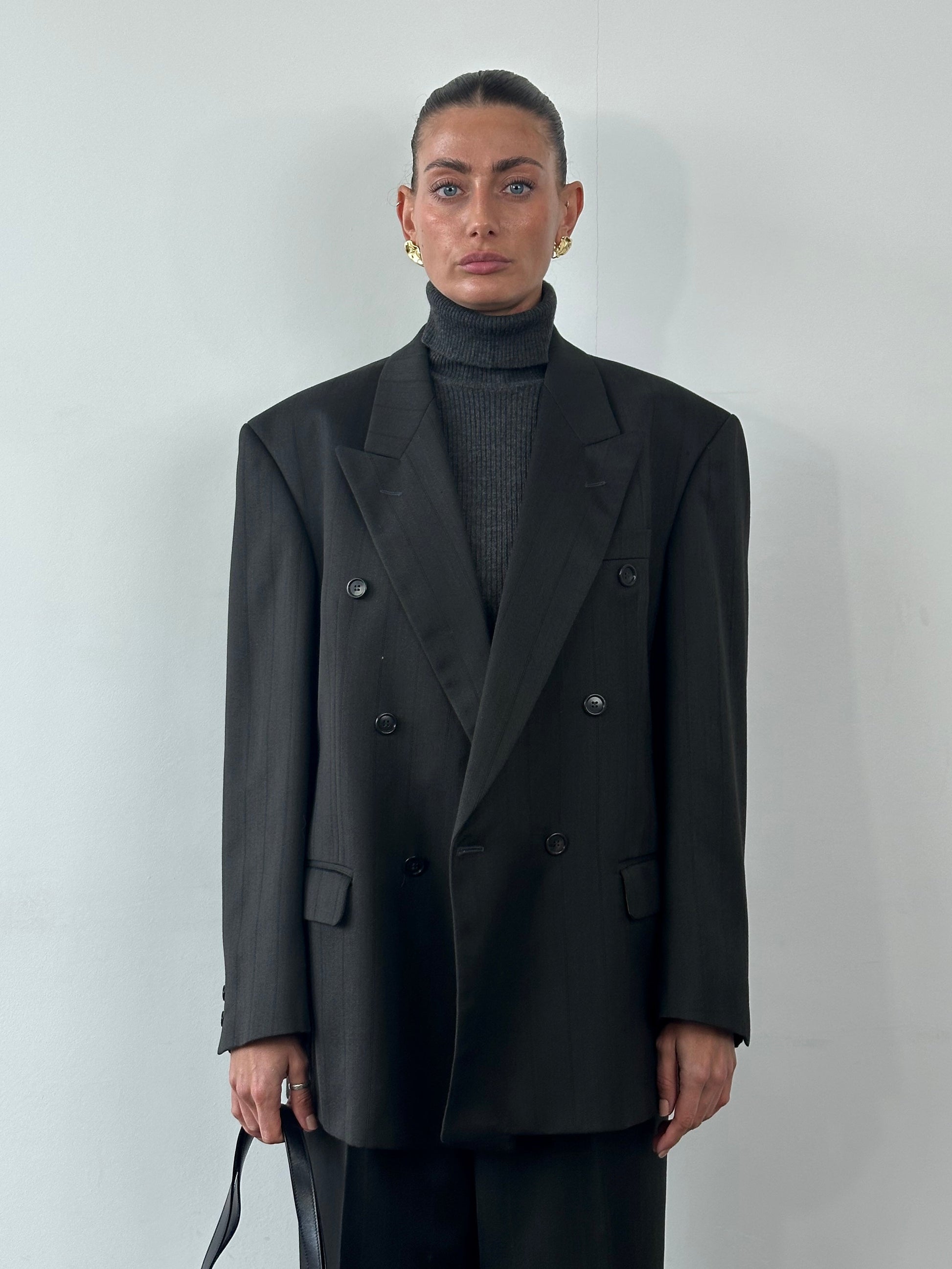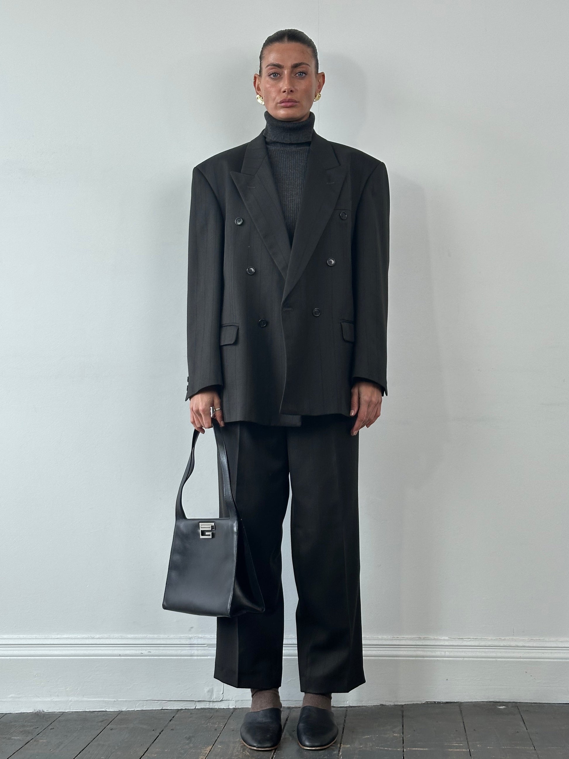 Vintage Wool Pinstripe Double Breasted Suit - 44R/W34