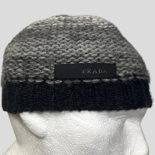 Prada Sport 2007 Alpaca Wool Carbon Logo Beanie - OS