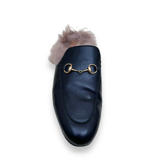 GUCCI PRINCETOWN HORSEBIT-DETAILED SHEARLING-LINED LEATHER LOAFERS BLACK UK8