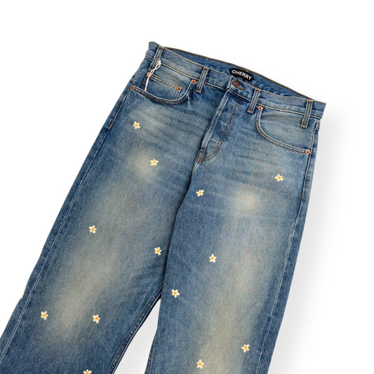CHERRY LA BLOSSOM STRAIGHT-LEG EMBROIDERED JEANS BLUE W32”
