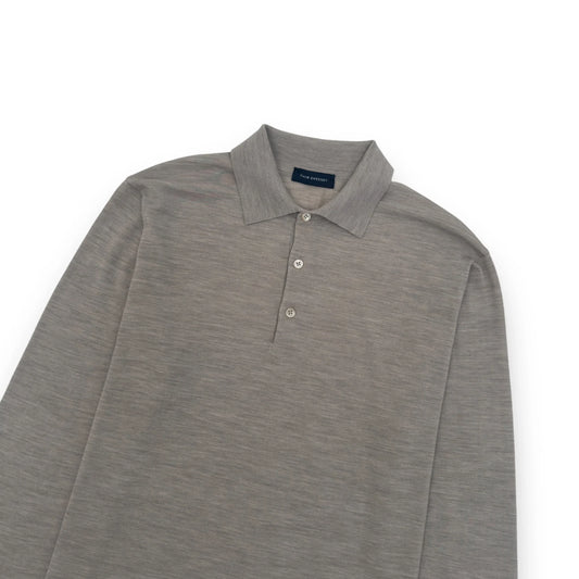 THOM SWEENEY LONG SLEEVE POLO SHIRT TAUPE L