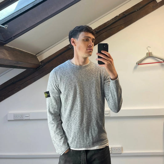 Stone Island Grey SS19 Lightweight Raw Edge Grainy Knit Jumper