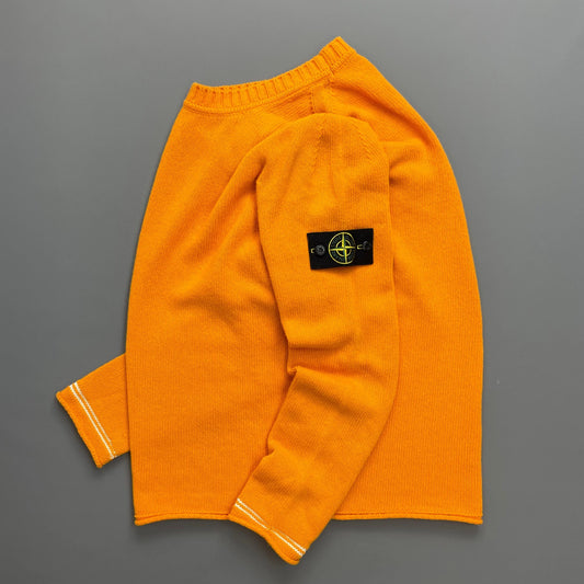 Stone Island Orange Midweight Raw-Edge AW17 Knit Crewneck Jumper