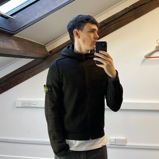 Stone Island Brown AW05 Textured Knit Hoodie