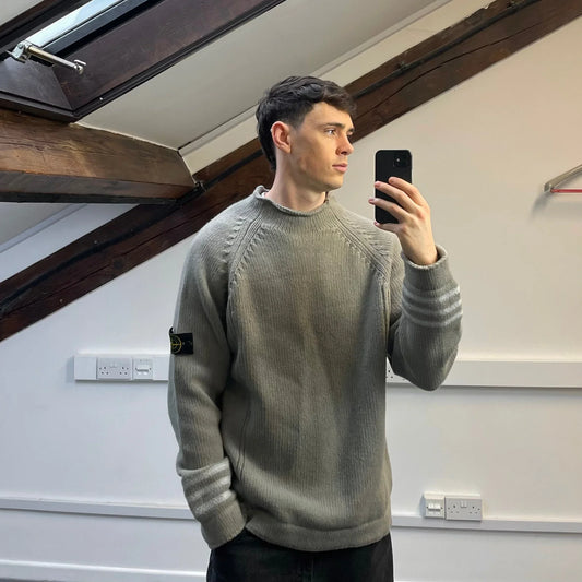 Stone Island Grey AW01 Chunky Wool Knit Mockneck Jumper