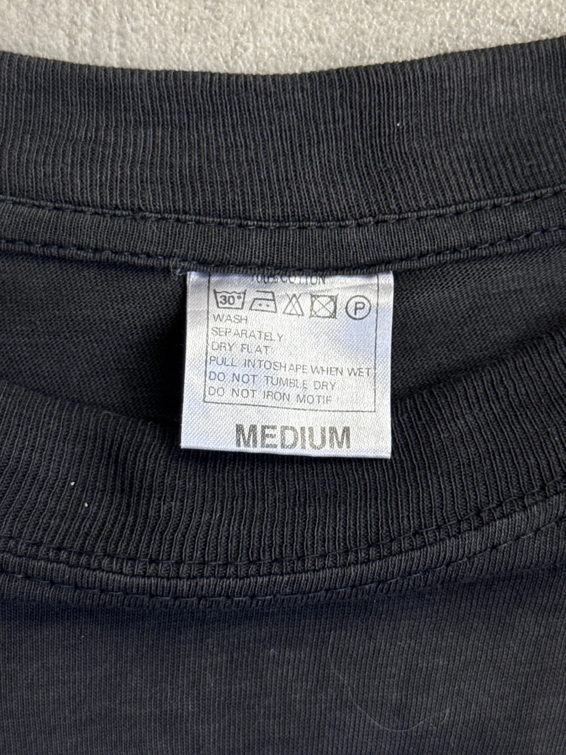 A highly collectible piece of 90s pop culture history, this Princess Diana memorial graphic tee captures the era’s tribute style with a bold commemorative print. These memorial tees became iconic after the late-90s period and remain some of the most sought-after vintage graphic shirts today — not just for the cultural significance, but for their unmistakable aesthetic and true vintage construction.