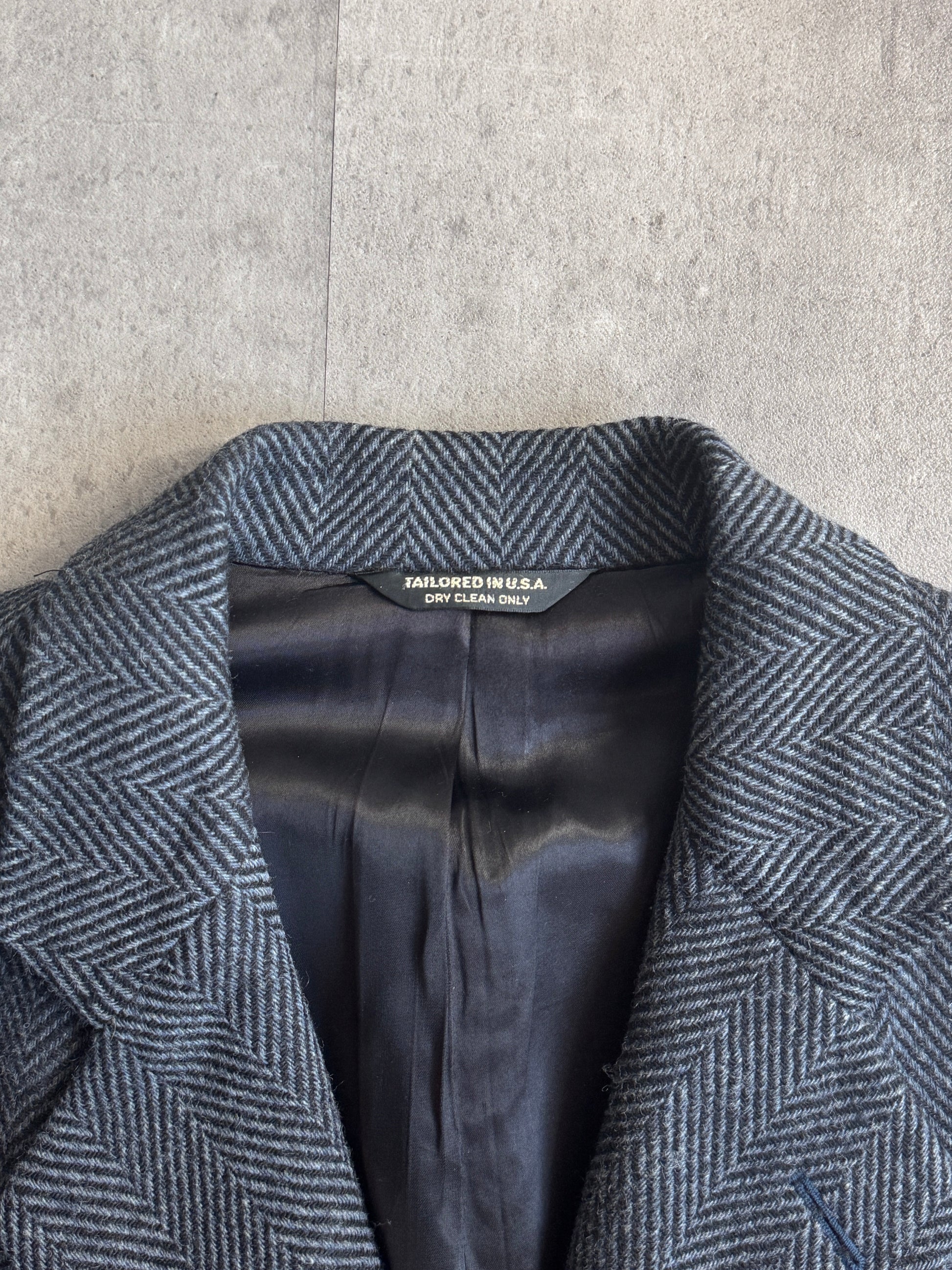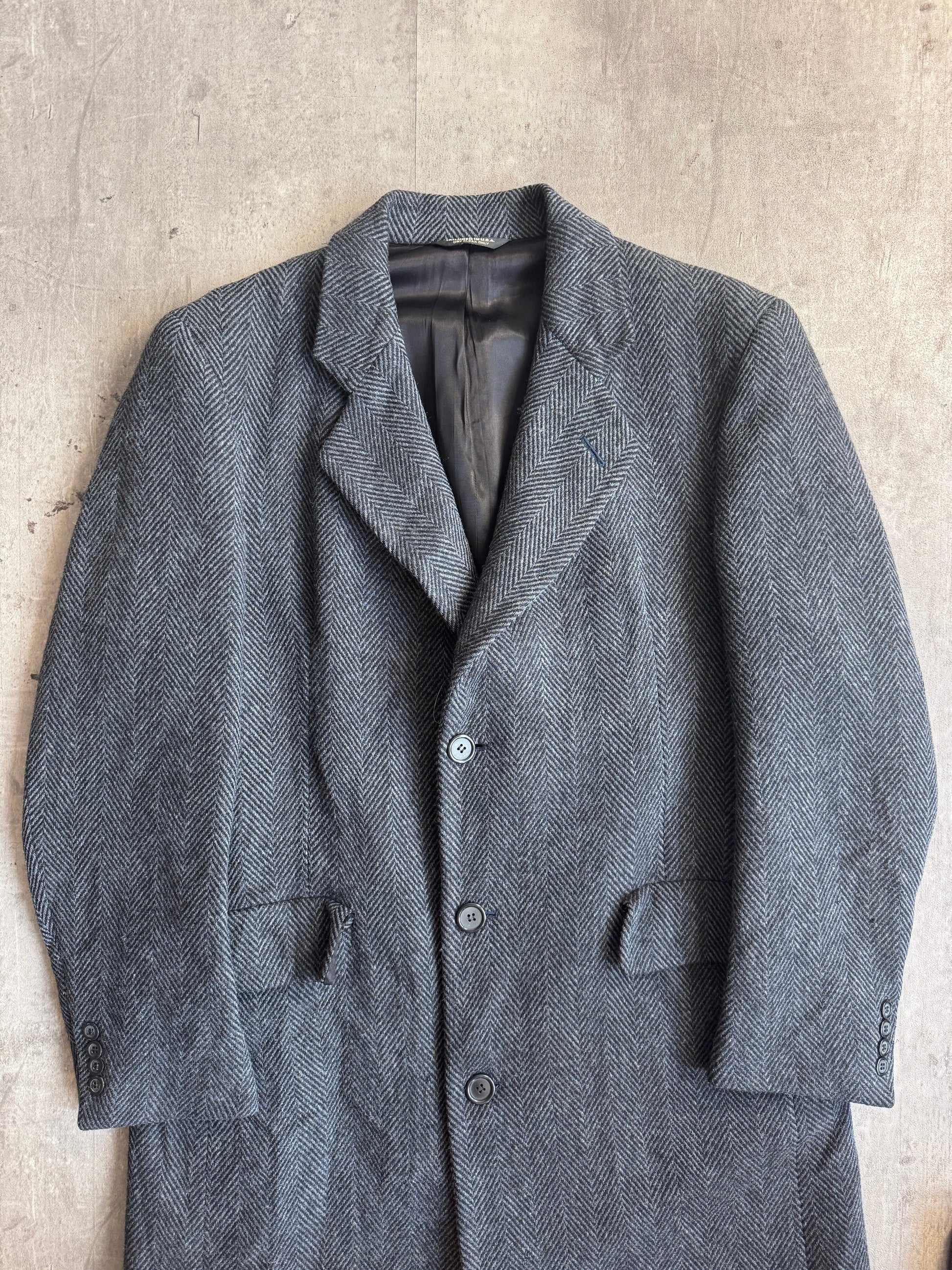 Christian Dior Monsieur Sport Pure Wool Double Breasted Grey Herringbone Tweed Coat