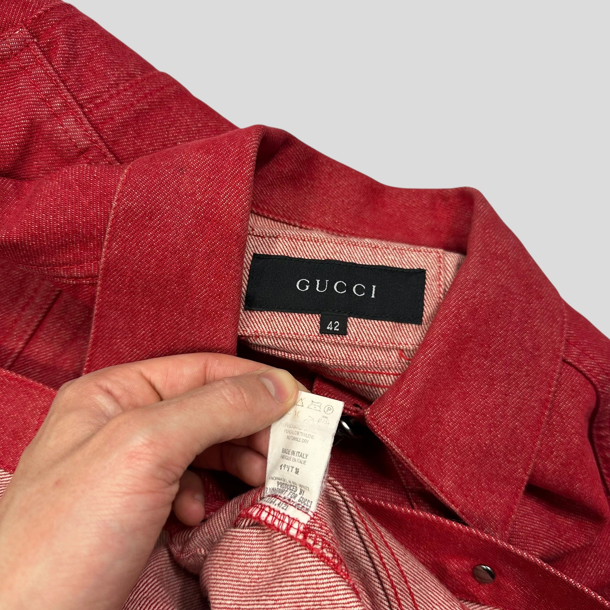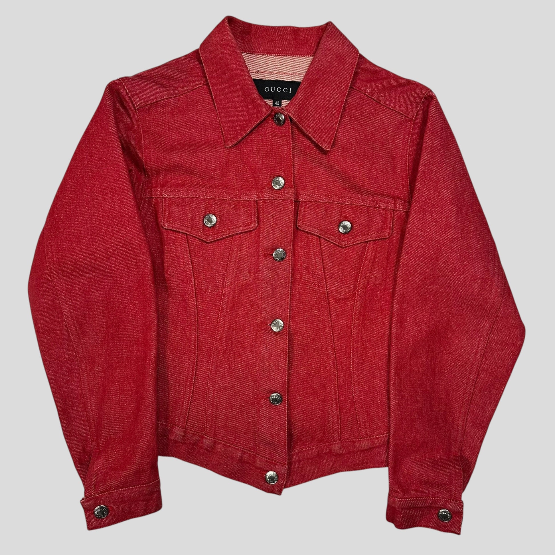 Gucci by Tom Ford 1999 Red Denim Cropped Front Drop Jacket - IT42