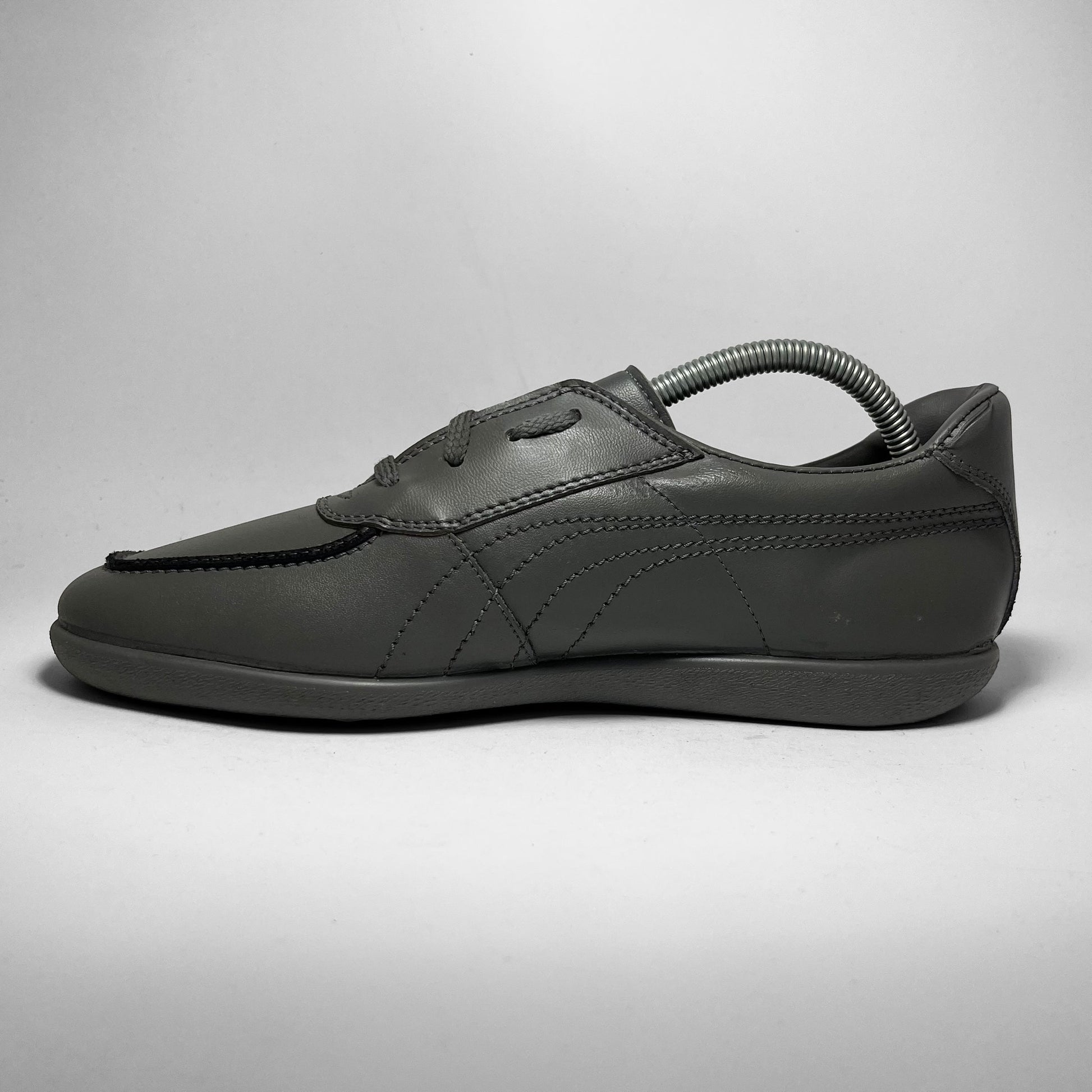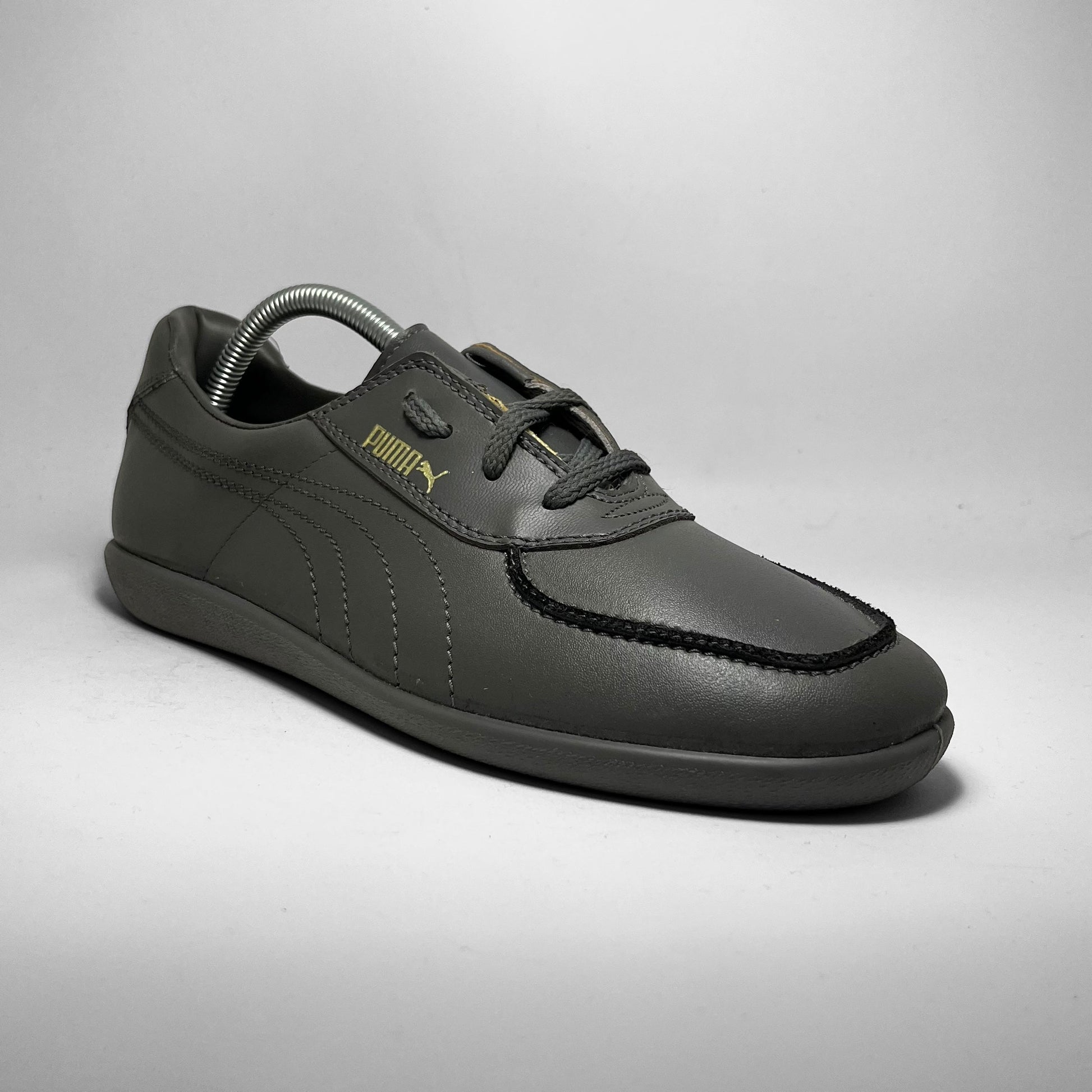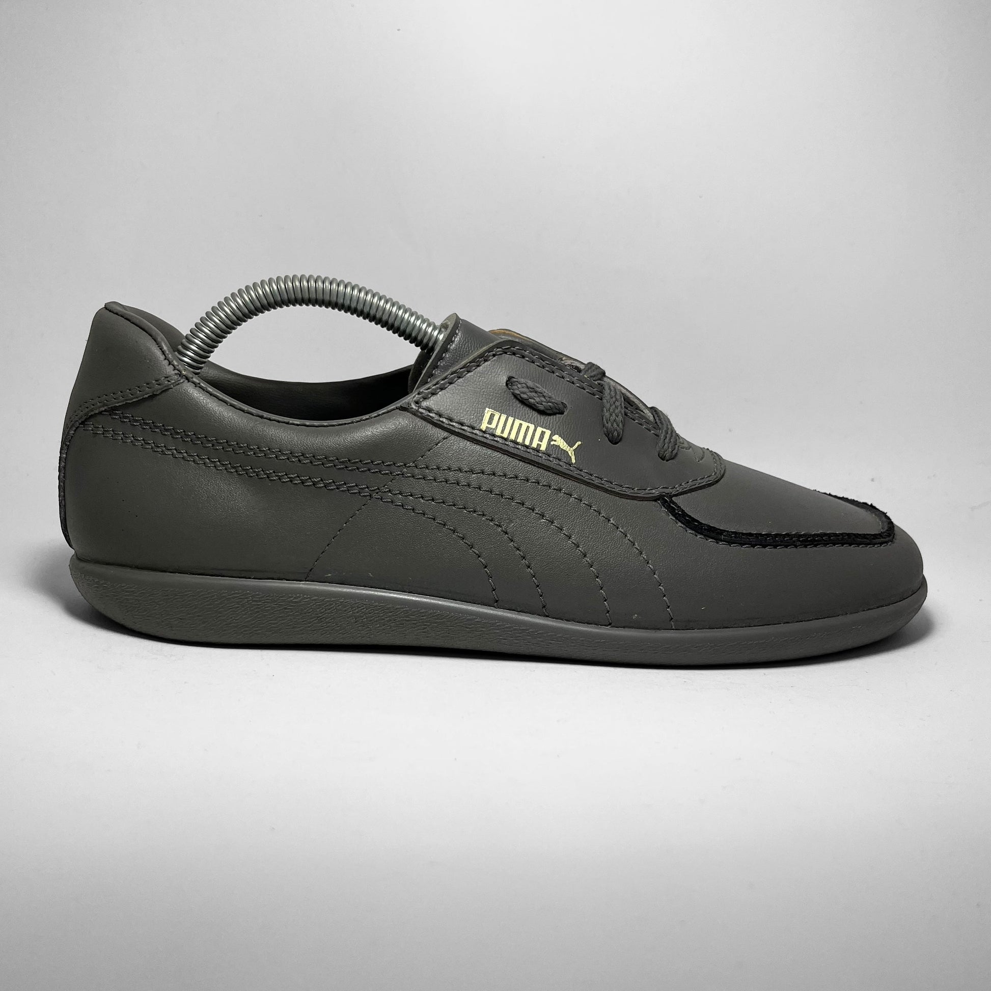 Classic Puma in full grain leather rocking grey throughout and contrast golden script branding. Made in Italy.