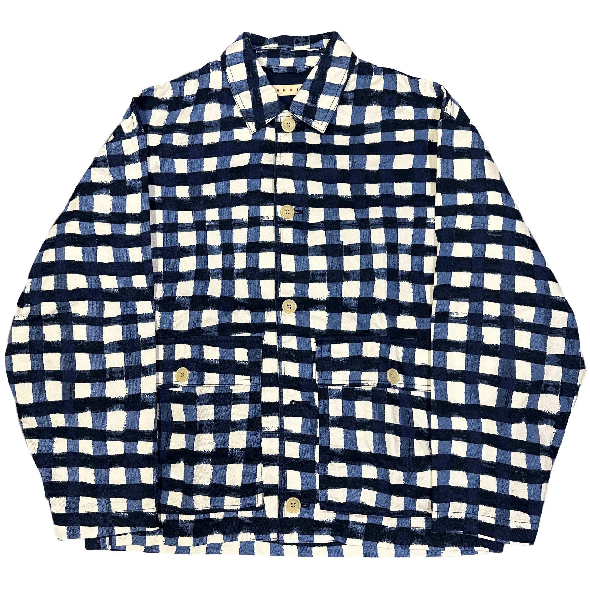 Uniqlo X Marni Collared Check Jacket In Blue & White ( XL )