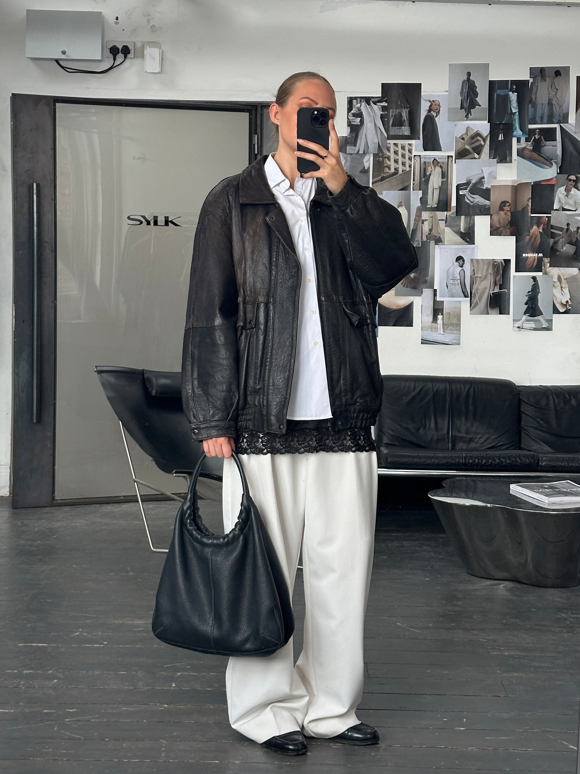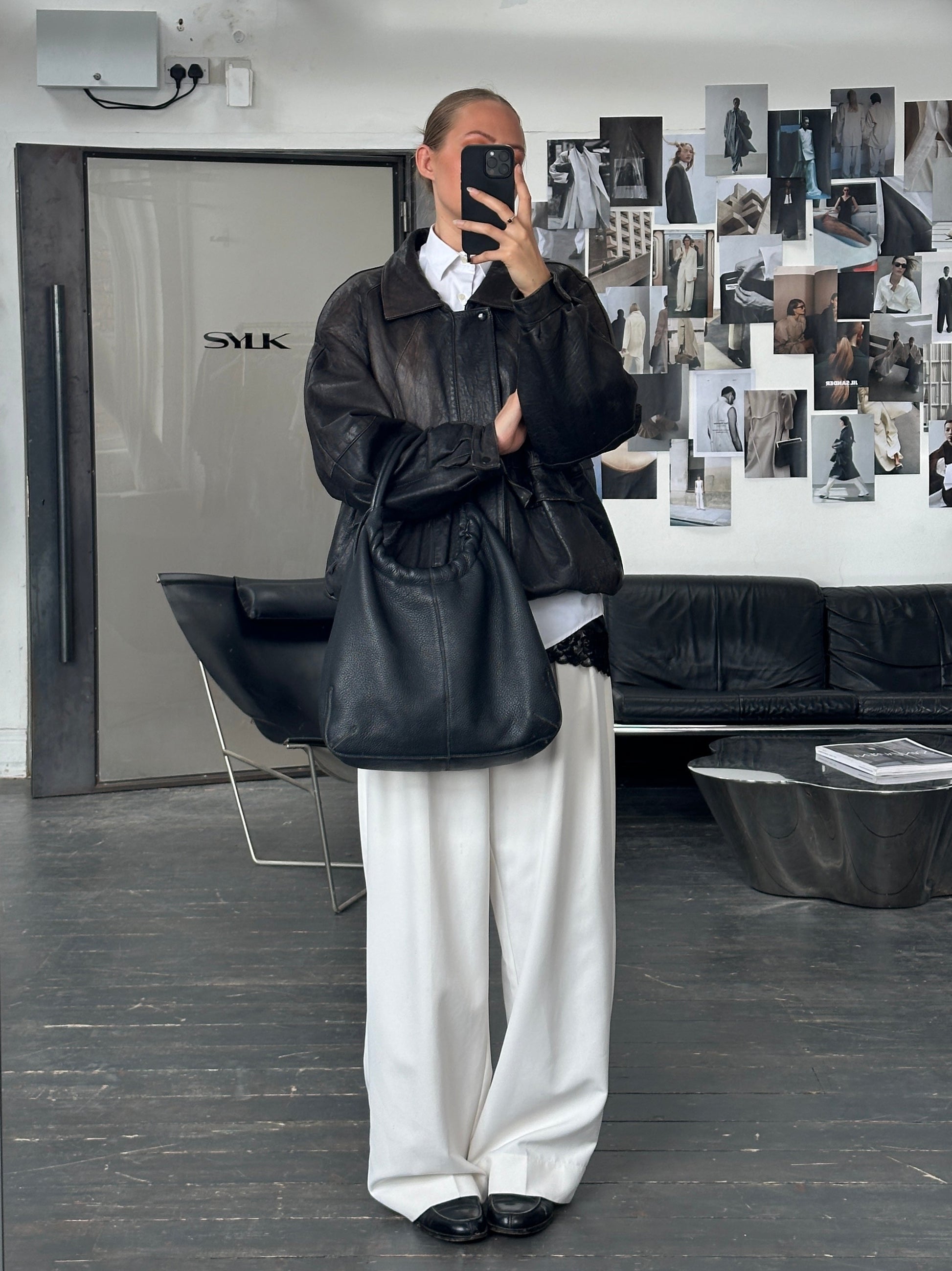 ~ Riri zip closure, quilted lining, internal leather-trimmed pocket