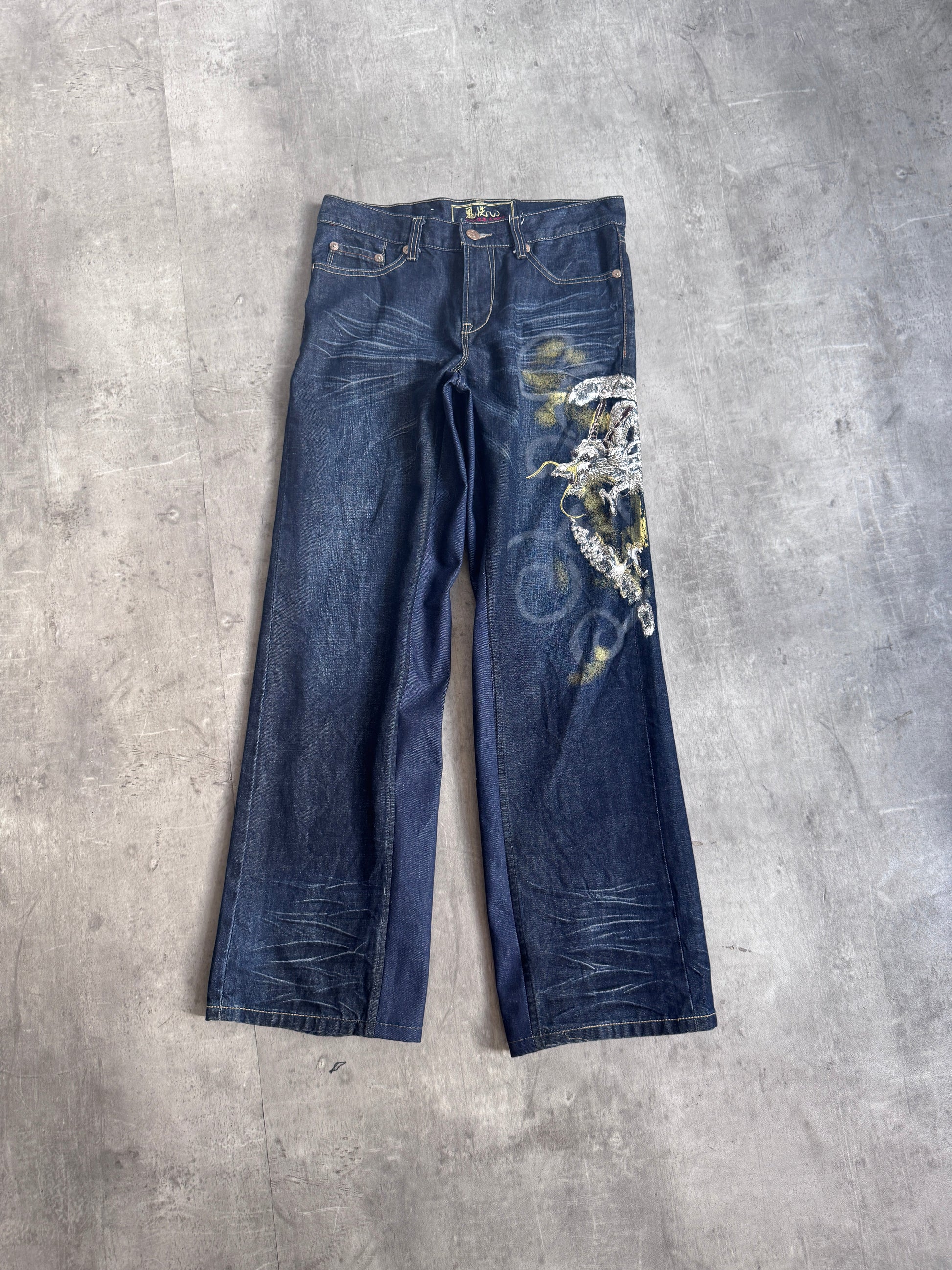 VT Rework: Japanese Embroidered Wide Leg Denim Jeans