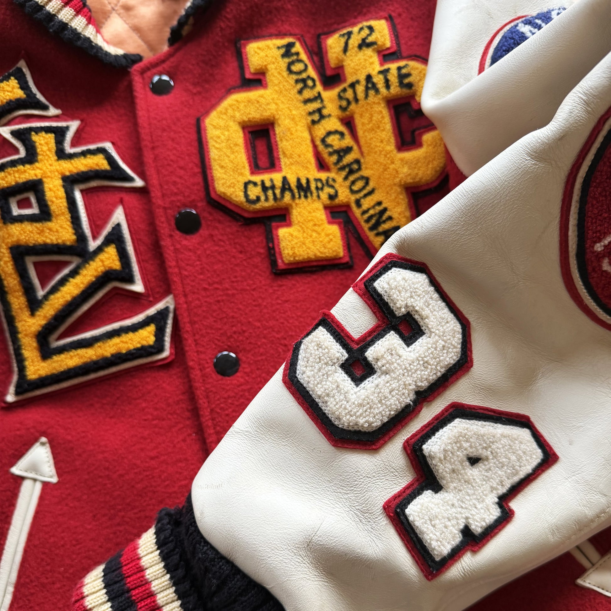 • Chenille patches and detailed embroidery