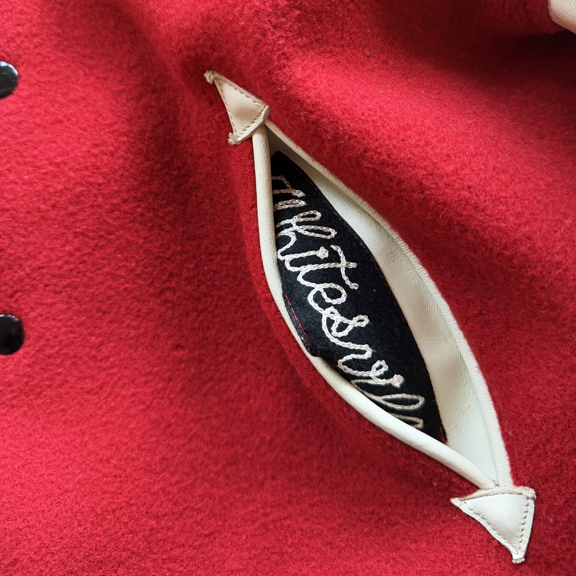• 30 oz Melton wool body and real leather sleeves