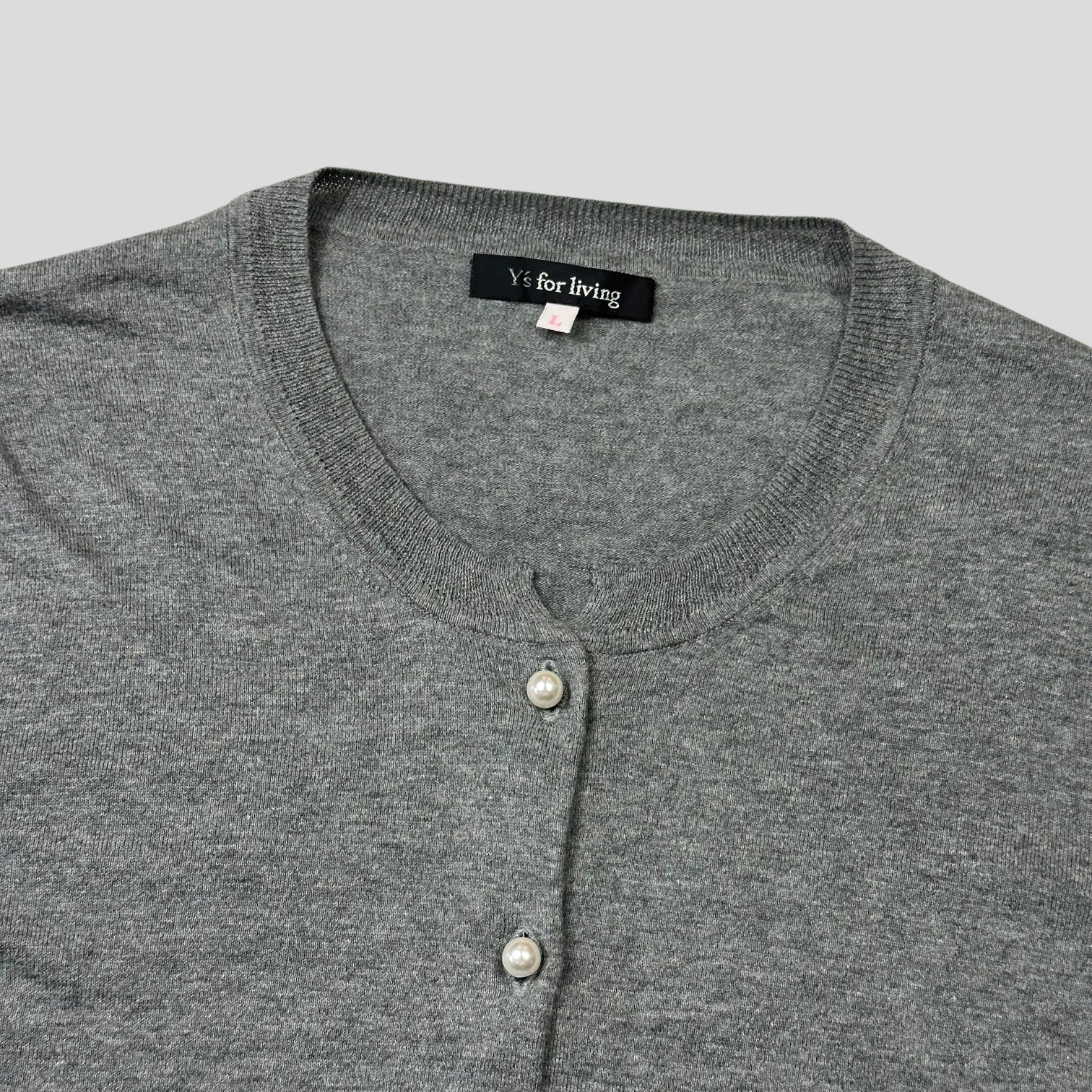 Rare 2000’s Yohji Yamamoto Y’s for Living line grey lightweight knit cardigan with mother of pearl buttons, boxy fit.