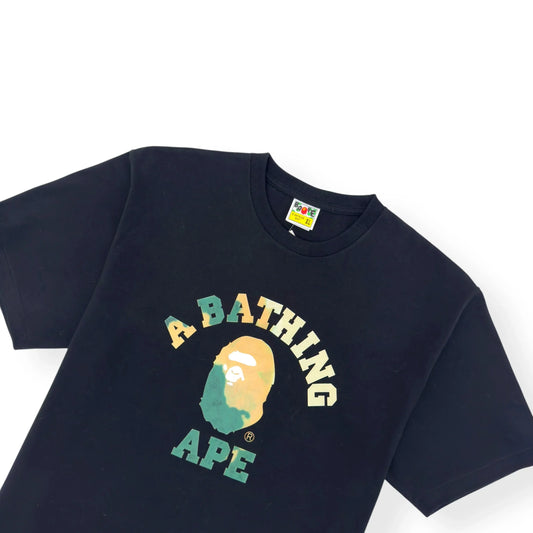 A BATHING APE TIE DYE COLLEGE T-SHIRT BLACK / GREEN XL