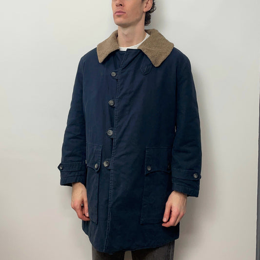 Emporio Armani Navy 90s Faux Sheerling Overcoat