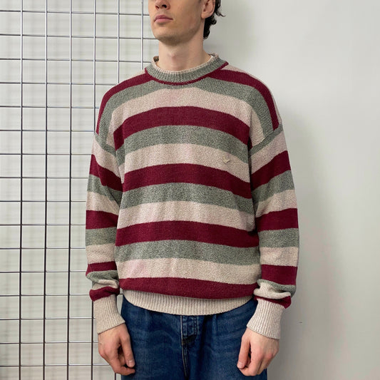 Emporio Armani Red, Grey & White 80s Knit Jumper