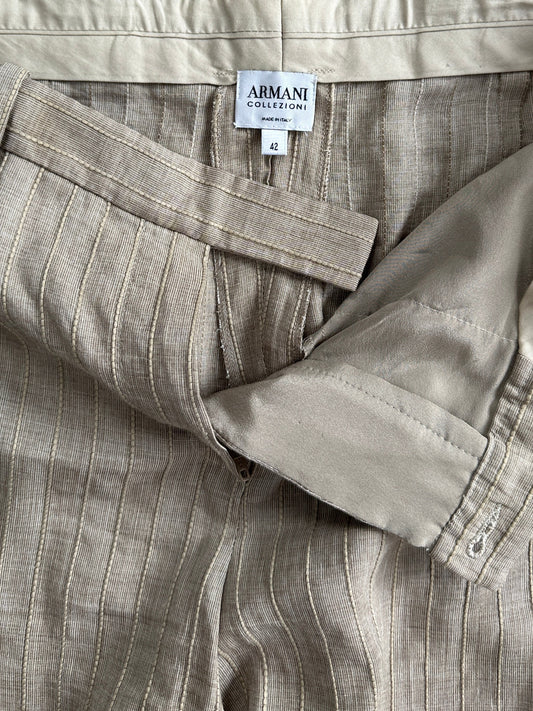 Armani Collezioni Cotton Linen Stripe Mid Rise Straight Leg Trousers - W26